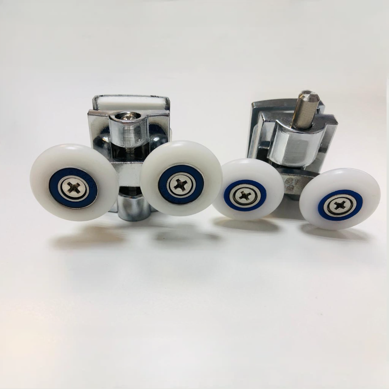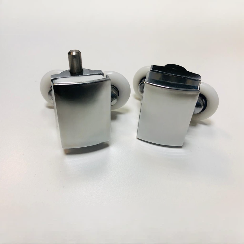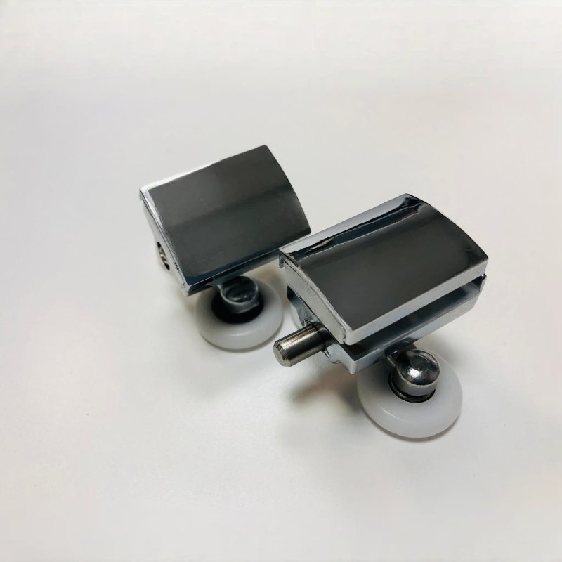 Подходят для стекол толщиной 4-8 мм. В верхних роликах есть регулировочный винт для настройки, нижние ролики оснащены прижимной клипсой.