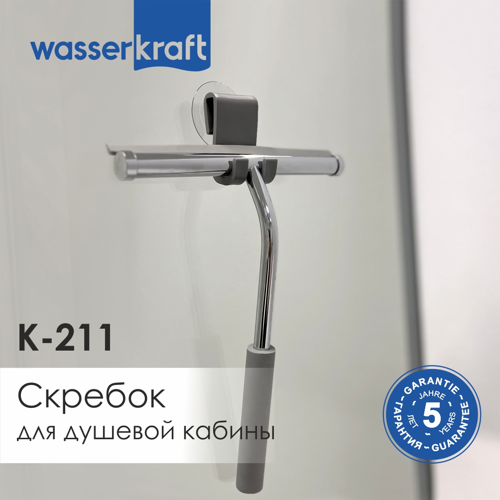 Удобное и простое крепление скребка к стене. Скребок К-211 можно закрепить двумя способами: с помощью вакуумной присоски к стене или стеклу, либо с помощью пластикового крючка за стеклянный бортик душевой кабины (при условии, что толщина стекла не превышает 2 см). При необходимости скребок можно перевесить в удобное для Вас место.
