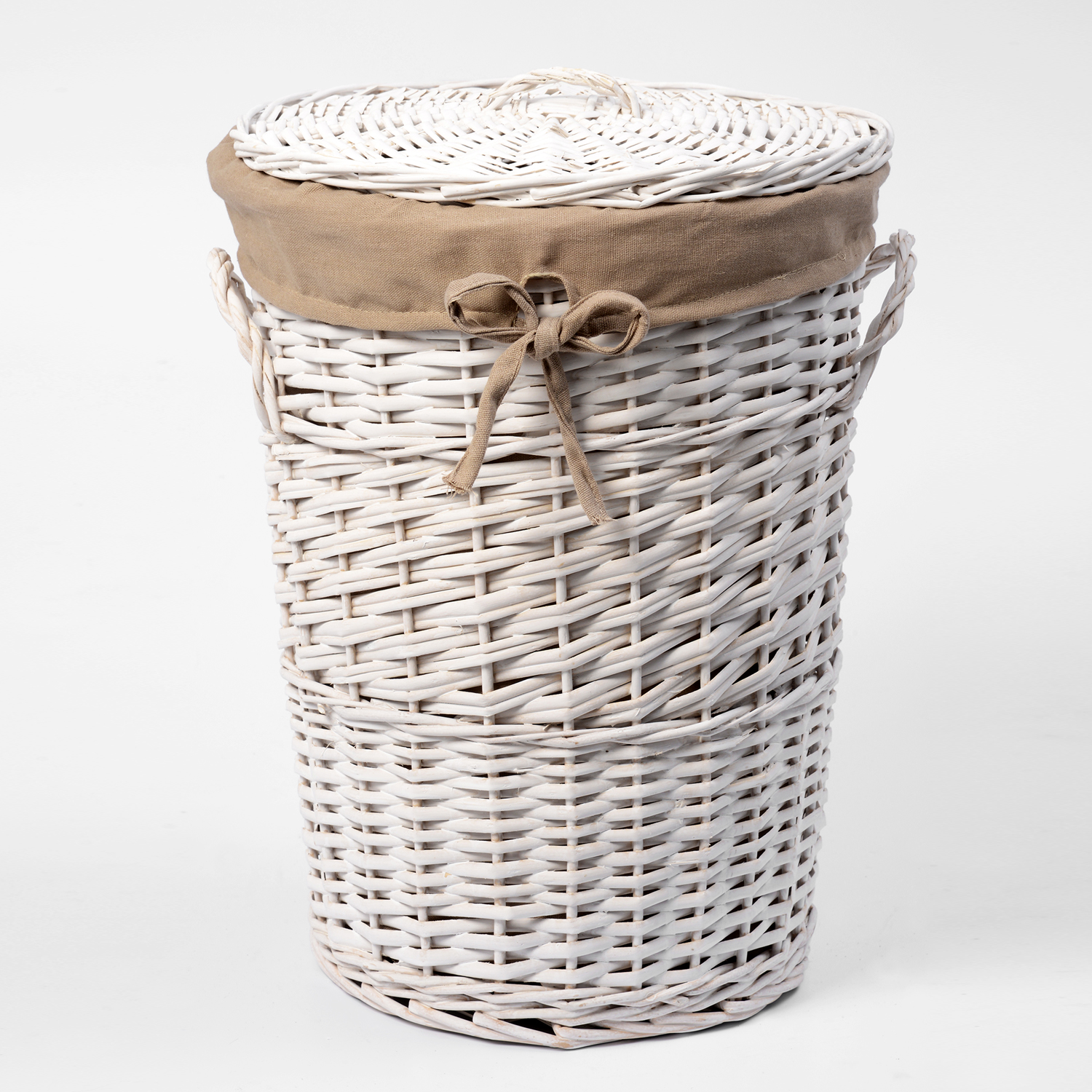 Назначение: Плетеная корзина. Материал: Прутья ивы, текстиль. Покрытие: Водоотталкивающее покрытие. Описание: Размер: 36 х 36 х 49 см* Съемный чехол можно стирать в машинке при температуре не выше 60 градусов.