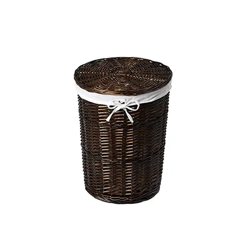 Назначение: Плетеная корзина. Материал: Прутья ивы, текстиль. Покрытие: Водоотталкивающее покрытие. Описание: Размер: 39 х 39 х 51 см* Съемный чехол можно стирать в машинке при температуре не выше 60 градусов.