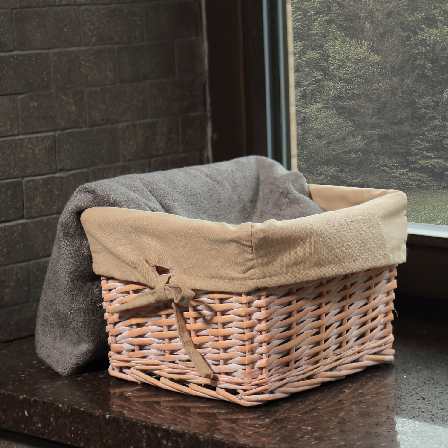 Назначение: Плетеная корзина. Материал: Прутья ивы, текстиль. Покрытие: Водоотталкивающее покрытие. Описание: Размер: 27 х 27 х 18 см* Съемный чехол можно стирать в машинке при температуре не выше 60 градусов.