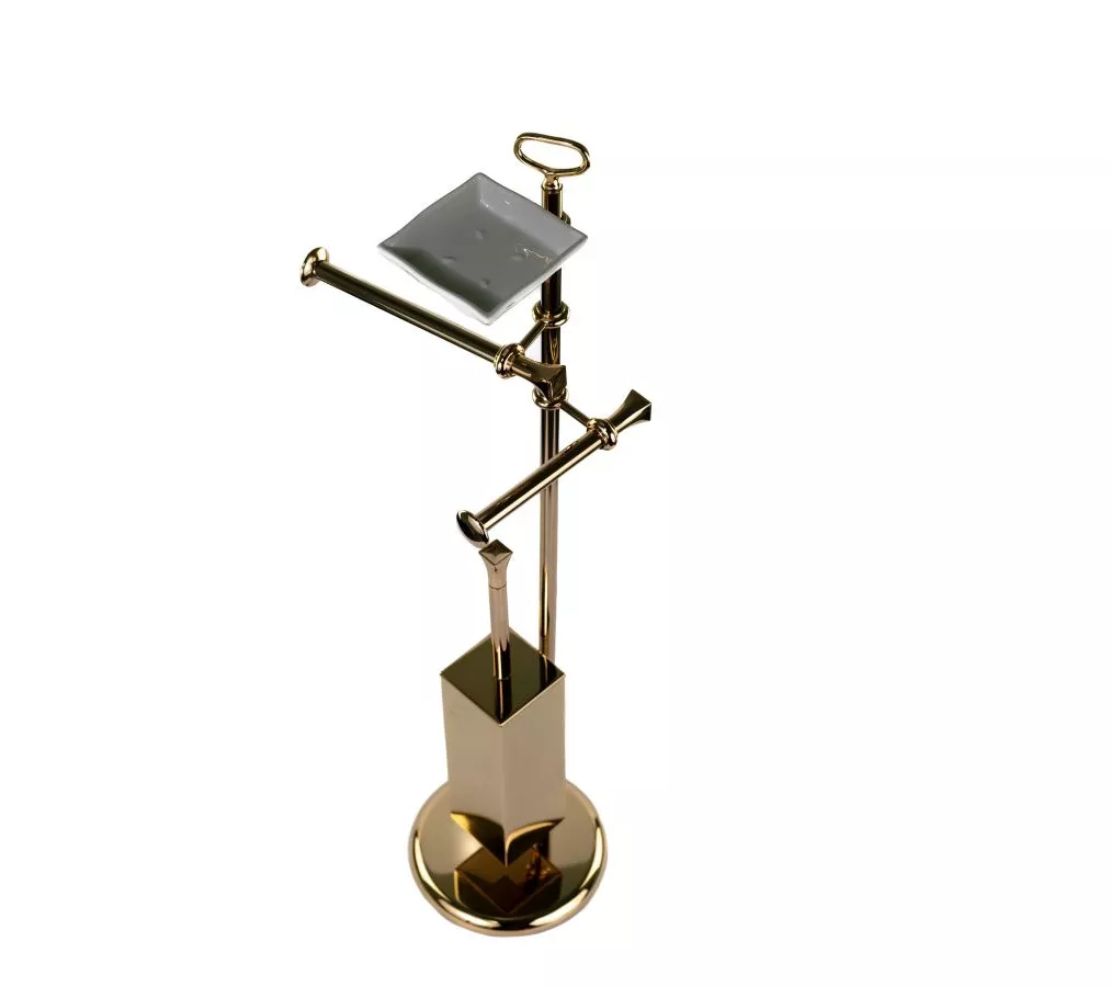 Stil Haus Prisma cтойка: мыльн. + полотенцедер.+ бумагодер. + ёрш метал. золото - белая керам