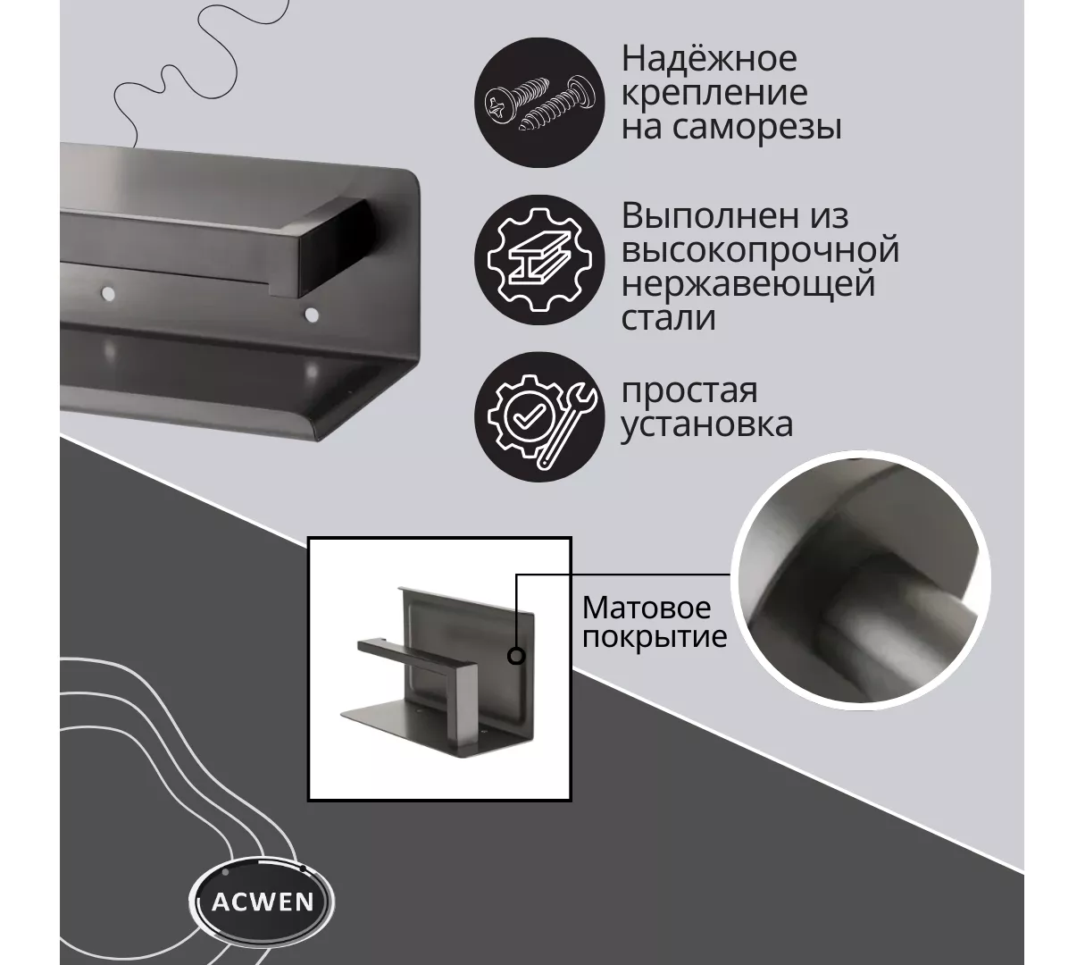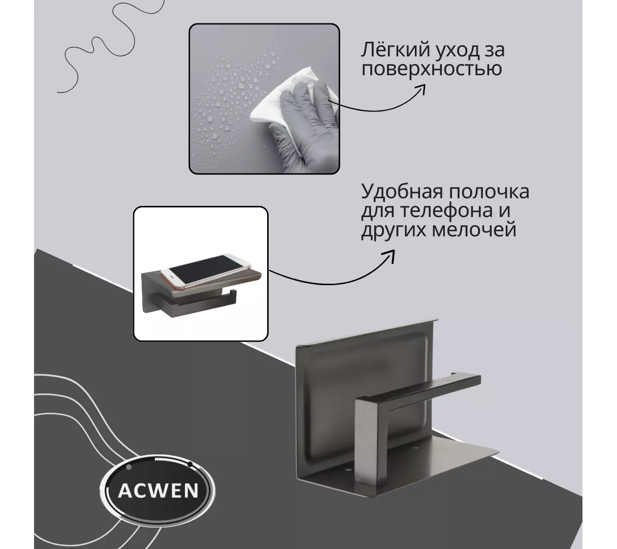 Элегантный держатель для туалетной бумаги ACWENСоздайте стильный акцент в ванной с этим компактным аксессуаром из прочной нержавеющей стали. Серый графитовый дизайн гармонично впишется в любой интерьер, добавляя современный минимализм. Материал обеспечивает надежность даже при частом использовании, сохраняя внешний вид годами.Простая установка и компактные размеры делают этот держатель идеальным выбором для маленьких помещений. Современная фурнитура гарантирует бесперебойную работу и легкость в уходе.