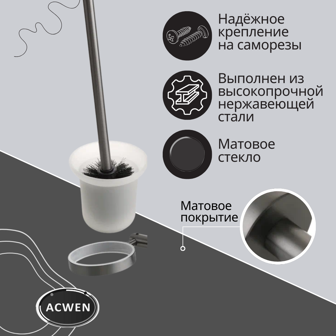 Держатель для туалетной щетки ACWEN выполнен из прочной нержавеющей стали, обеспечивая надежность и устойчивость к коррозии даже при частом использовании. Его современный графитовый цвет идеально впишется в интерьер любого помещения, сочетая функциональность с элегантным дизайном.