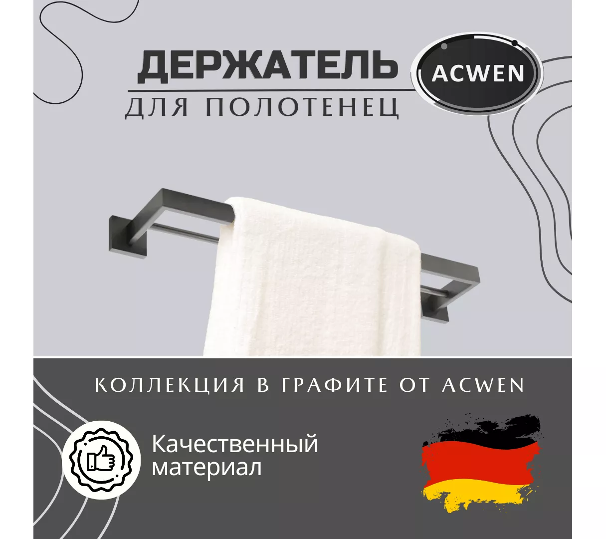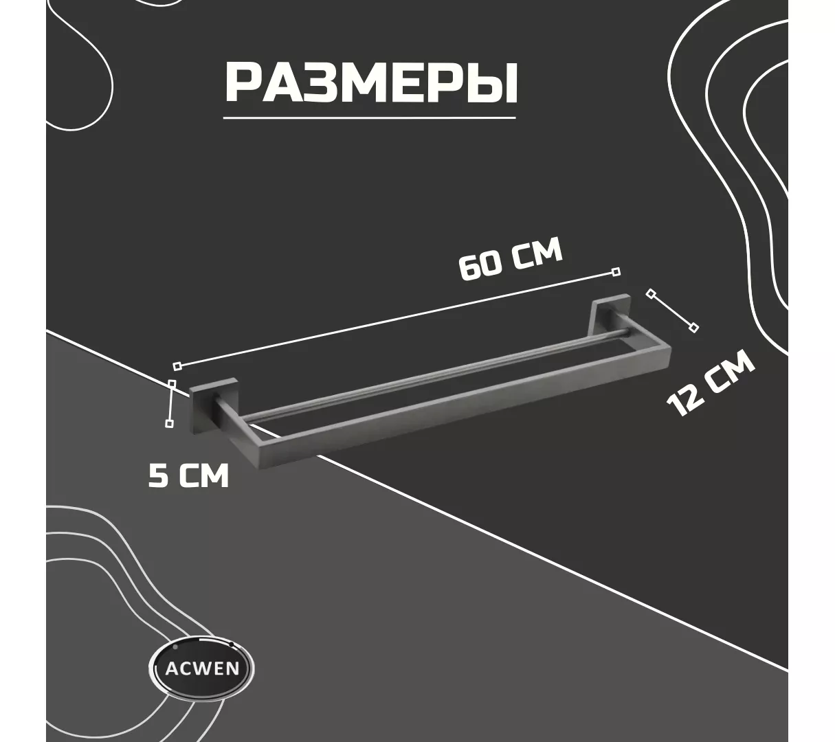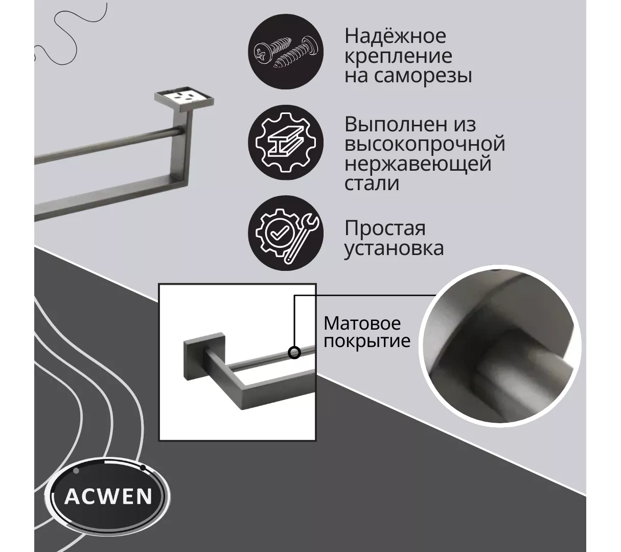 Держатель для полотенец двойной от ACWEN выполнен из высококачественной нержавеющей стали, обеспечивая долговечность и устойчивость к коррозии даже в условиях повышенной влажности. Серый цвет «Графит» идеально впишется в любой интерьер, добавляя стильного контраста и современного дизайна. Компактная конструкция позволяет удобно разместить два полотенца или другие принадлежности, освобождая пространство в ванной комнате.