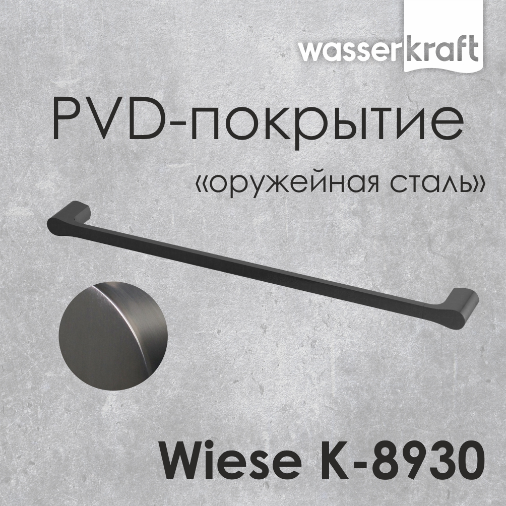 Цвет аксессуаров Wiese K-8900 с одной стороны достаточно лаконичный, отлично соседствуя как с теплой, так и с холодной гаммой интерьера. С другой стороны уникальный. В нем сплетены разные тона, которые в разных ситуациях проявляются по-особенному. Завершающую ноту составляет матовое стекло, которое уравновешивает игру оттенков.
