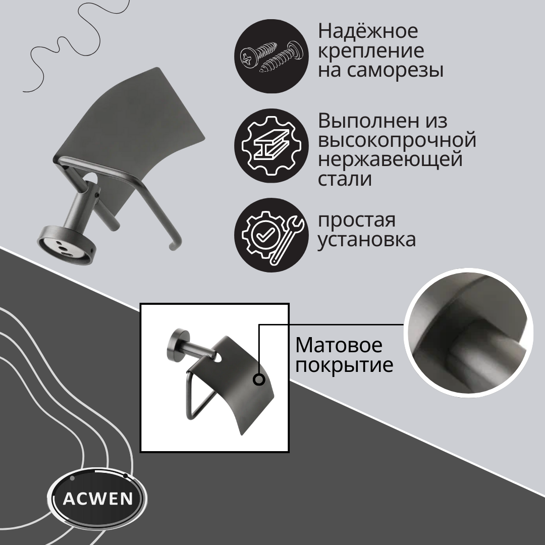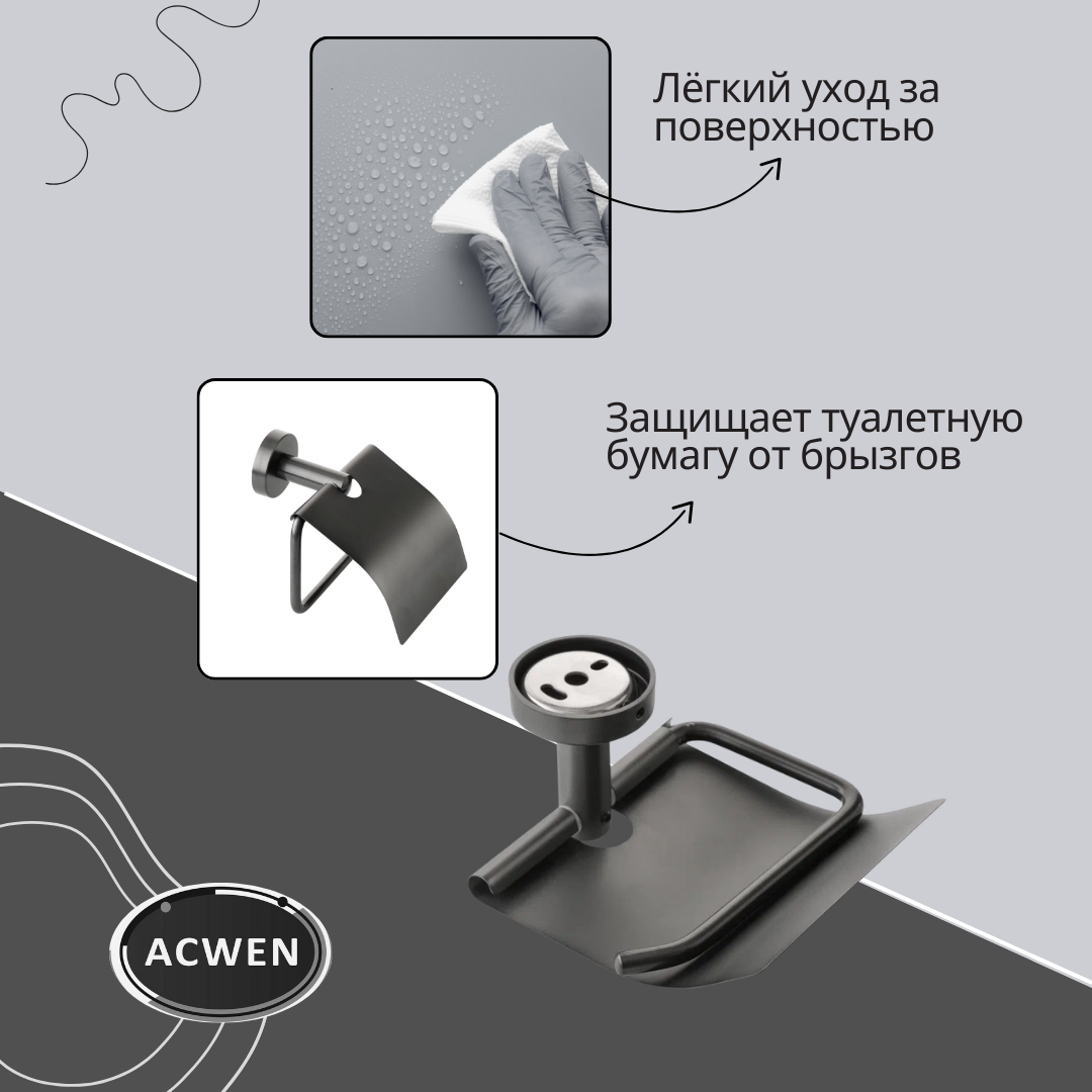 Держатель для туалетной бумаги ACWEN в графитовом исполнении сочетает современный дизайн и функциональность. Изготовлен из прочного материала, который обеспечивает долговечность даже при интенсивном использовании. Компактная конструкция легко монтируется на стену и удерживает рулоны различных размеров без скольжения.