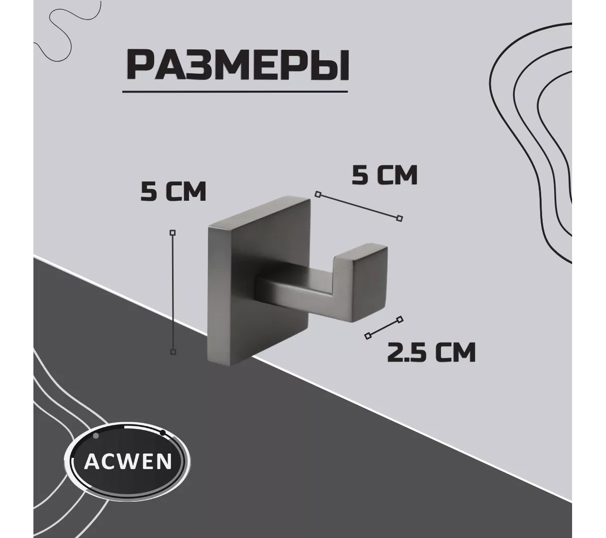 Крючок для полотенец Графит ACWEN SS84606GGS- Изготовлен из прочной нержавеющей стали, обеспечивает долгий срок службы даже в условиях повышенной влажности- Компактный настенный формат идеально вписывается в любую ванную комнату, освобождает пространство- Современный графитовый цвет сочетается с классическими и минималистичными интерьерами- Простая установка и надежная фиксация обеспечивают быстрое применение без сложностей