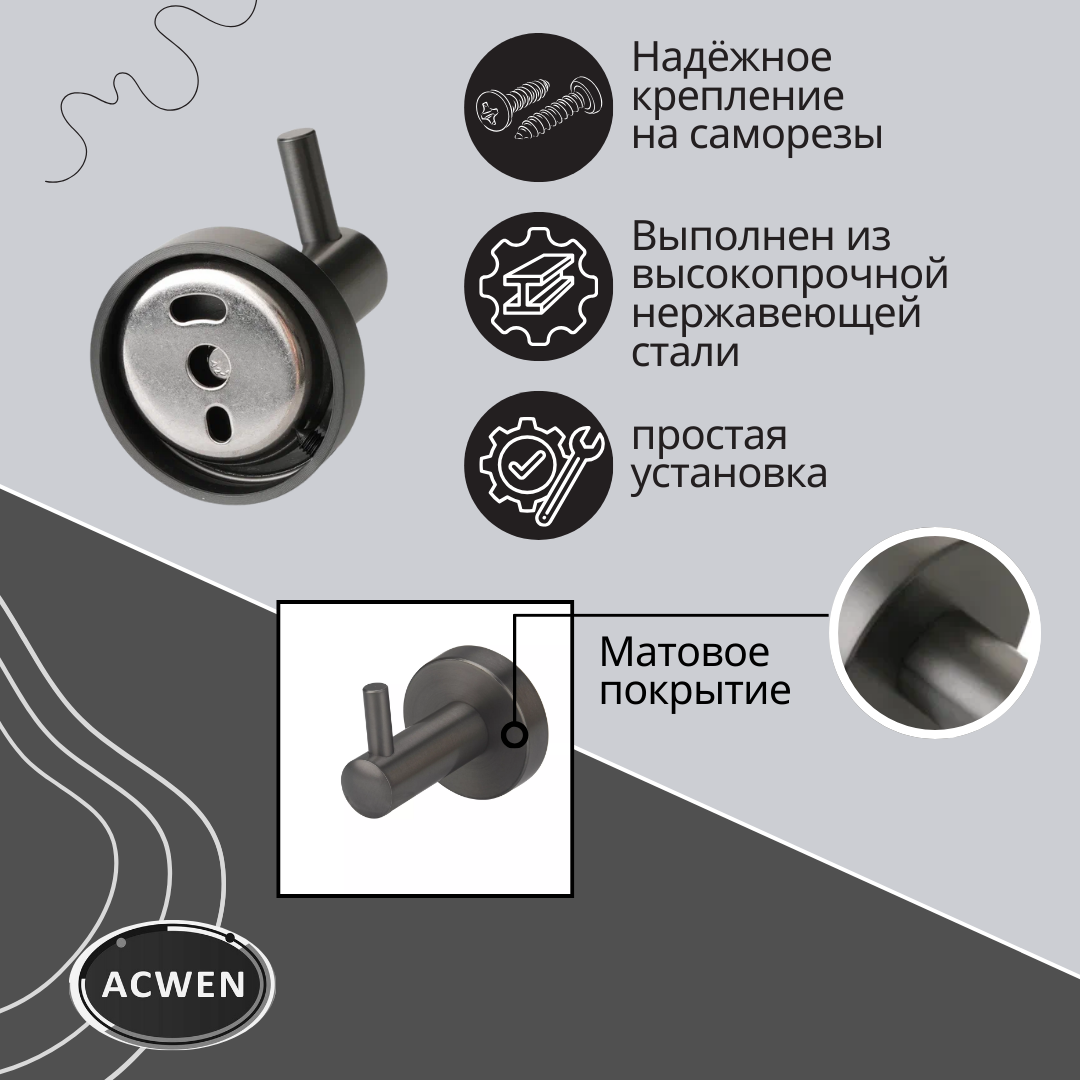 Крючок для полотенец Графит ACWEN SS84606GGS