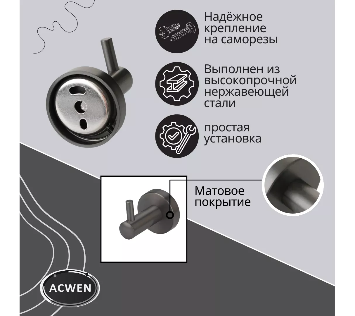 Крючок для полотенец Графит ACWEN SS84606GGS