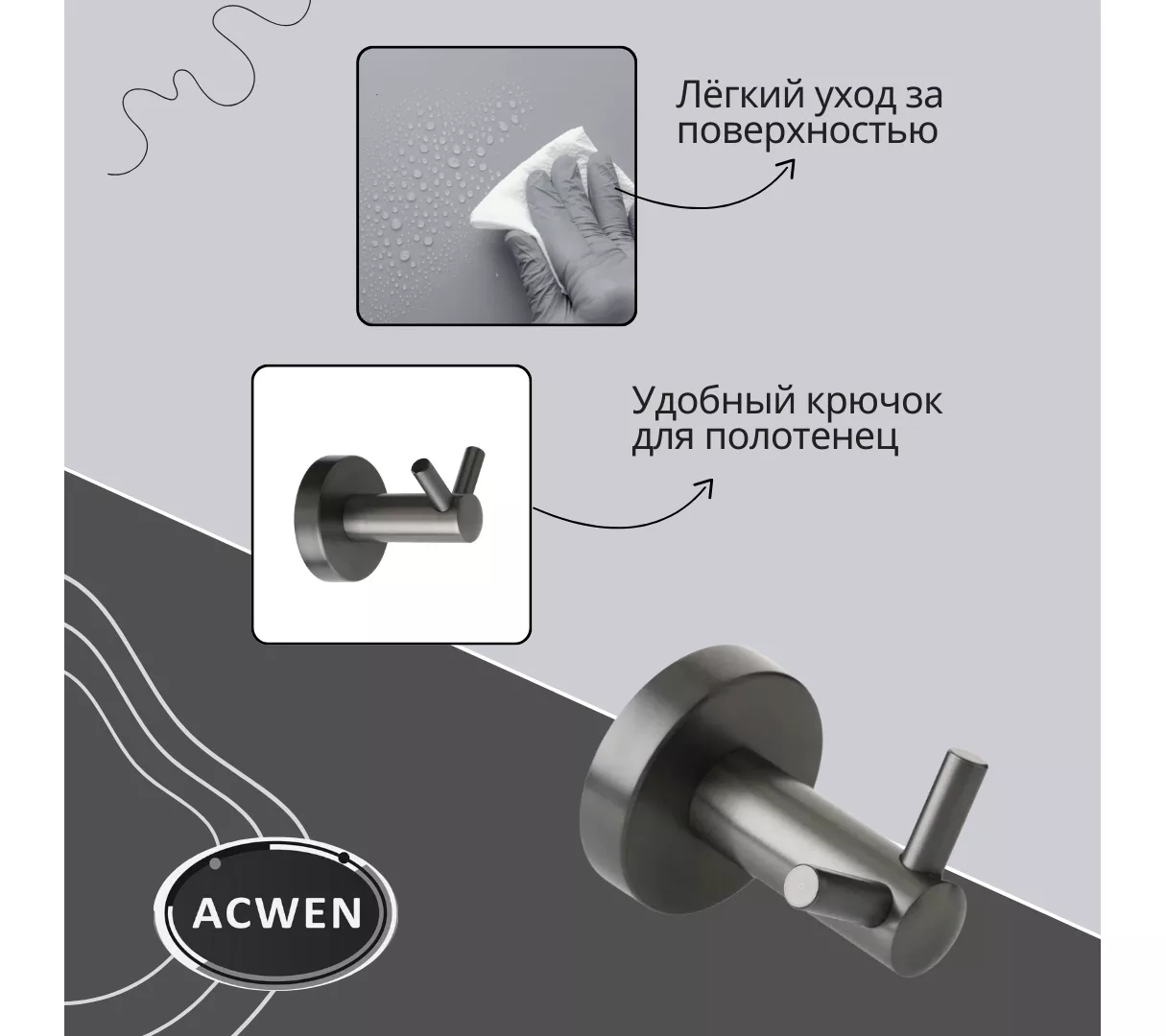 Крючок для полотенец двойной Графит ACWEN SS84606GGS
