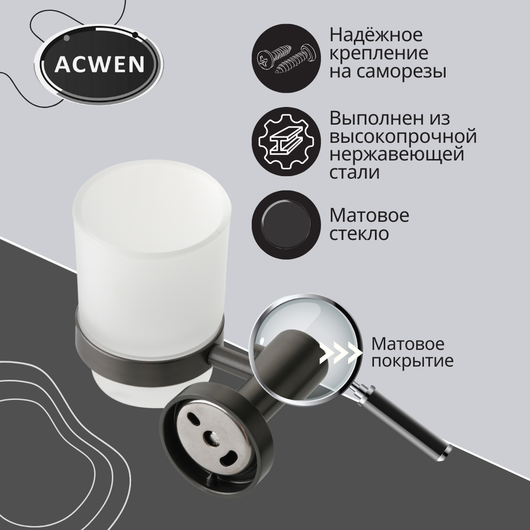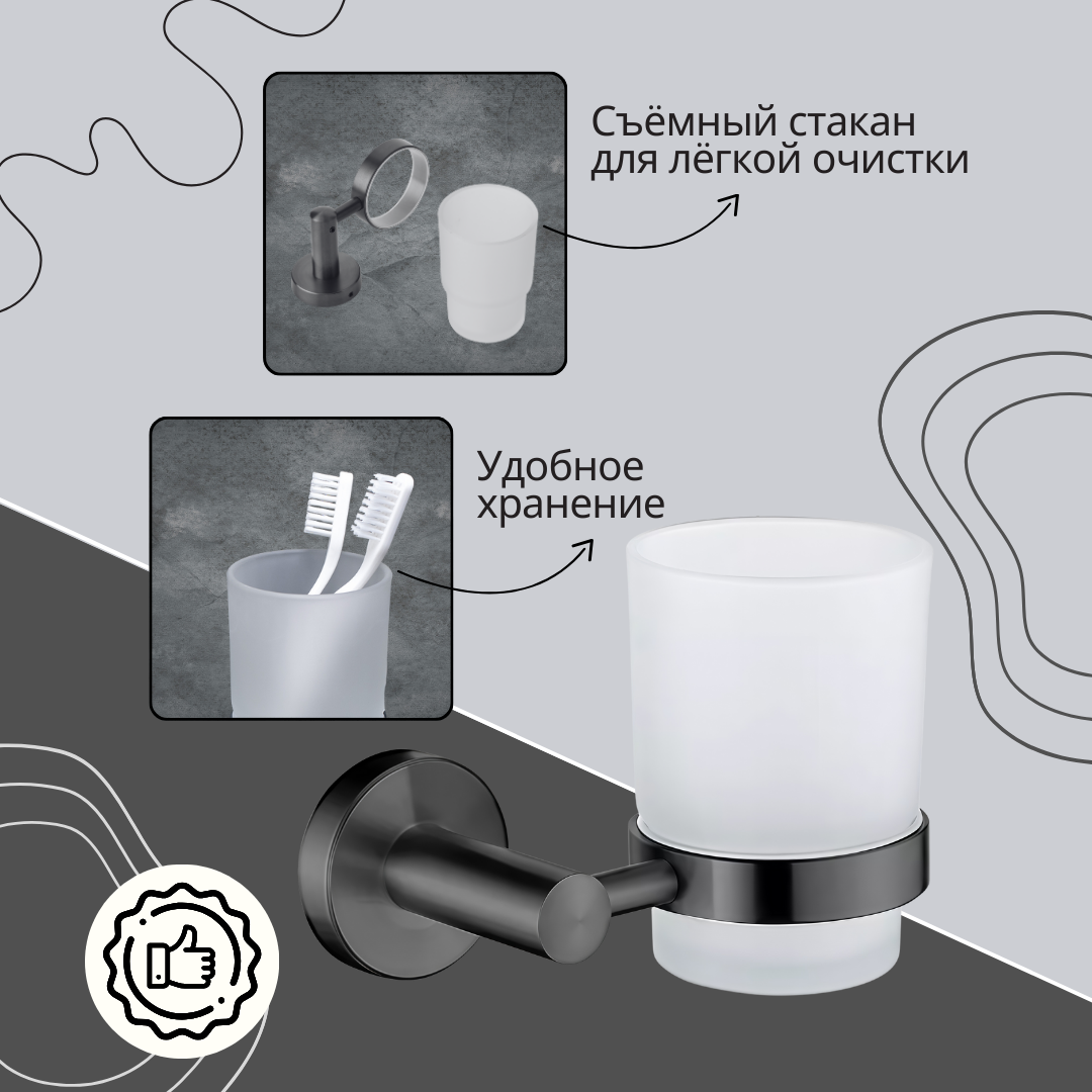 Стакан для зубных щеток на держателе Графит ACWEN SS84607GG