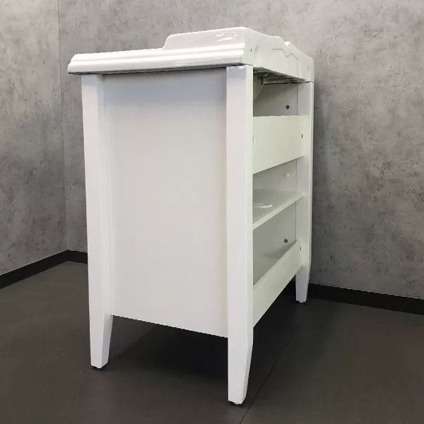 - Широкая - 120 см - тумба-умывальник с двумя створками и двумя ящиками. Петли створок и направляющие ящиков оснащены механизмами плавного закрывания. Фасады с фрезеровкой, окрашены белой глянцевой эмалью. Ножки из массива дерева. За створками одна горизонтальная полка. Габариты (ШхВхГ): 1200*880*490 мм