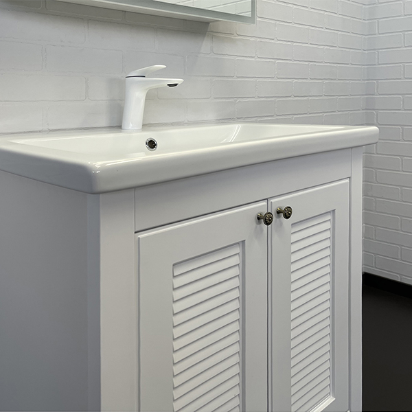 Название: Тумба-умывальник Артикул: 00-00013804CF Варианты цвета корпуса: Белый матовый Материал корпуса: ЛДСП Цвет фасада: Белый матовый Материал фасада: МДФ Габариты (ШхВхГ): 700*880*450 мм Комплектация: керамическая раковина Como 70 санфарфор Тумба с двумя створками оснащенными петлями с плавным закрыванием. Фасады покрыты белой матовой эмалью. Инструкция для мебели для ванных комнат COMFORTY Схема монтажа и подключения коммуникаций
