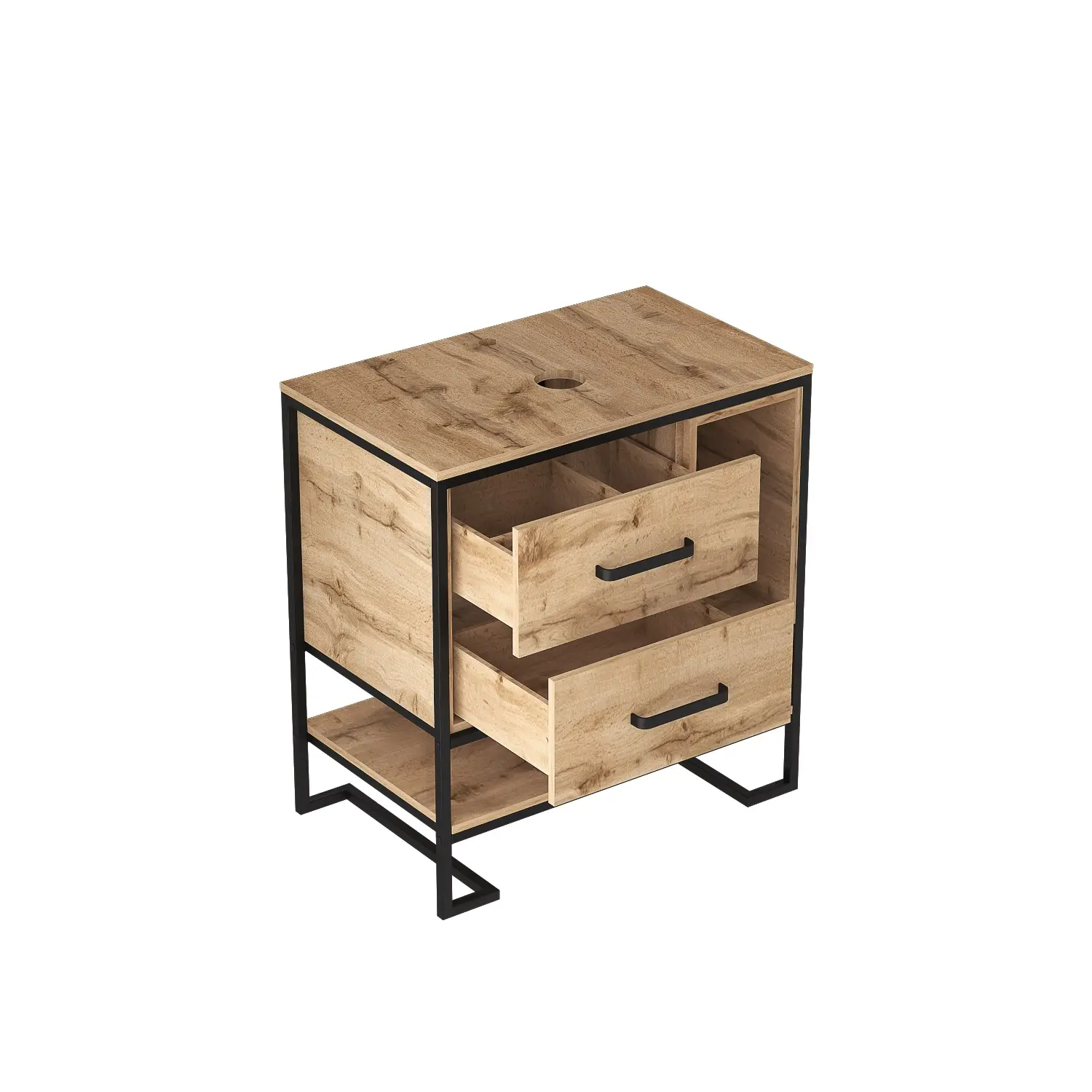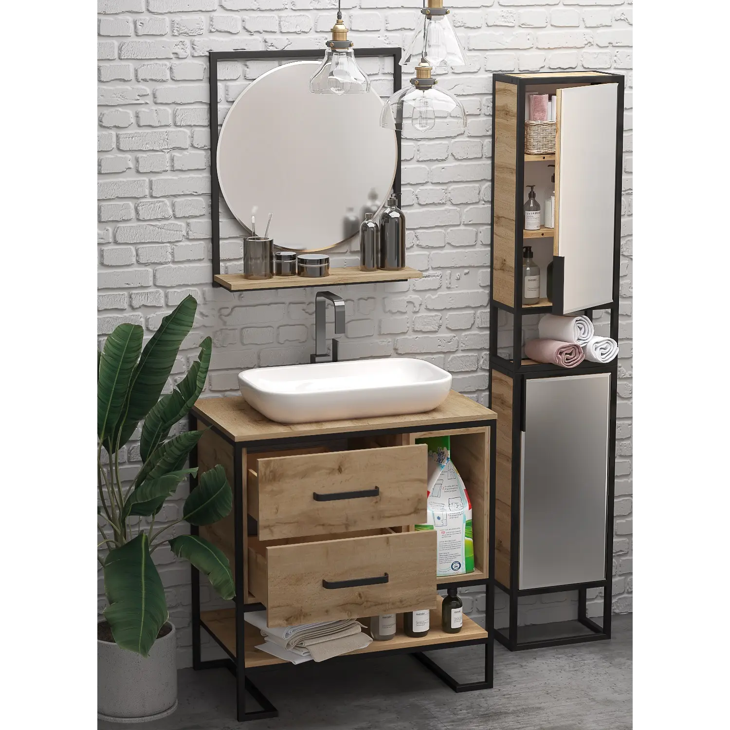 Тумба Grunge Loft 80 - это сочетание насыщенного древесного декора и благородства металла. Удобные вместительные ящики и открытые полки позволят разместить все необходимое. Данную тумбу можно скомлектовать с накладными раковинами. Оригинальная ручка идеально сочетается с прочным металлическим черным каркасом тумбы. Благодаря дополнительной защиты тумбы влагостойким акриловым лаком, внешний вид мебели будет оставаться в первозданном виде долгое время.