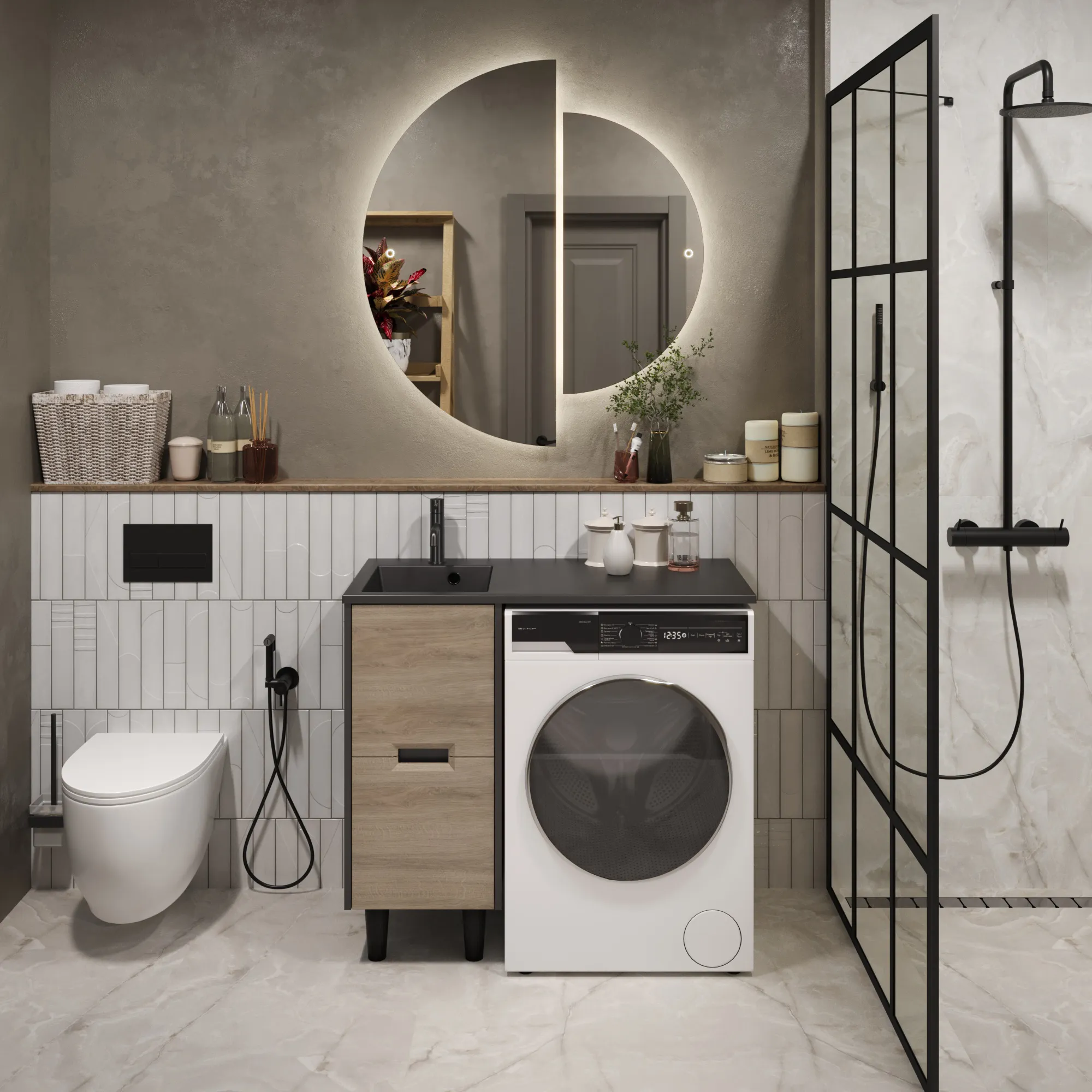 • Экономия пространства: Идеальное решение для ванной комнаты любого размера.