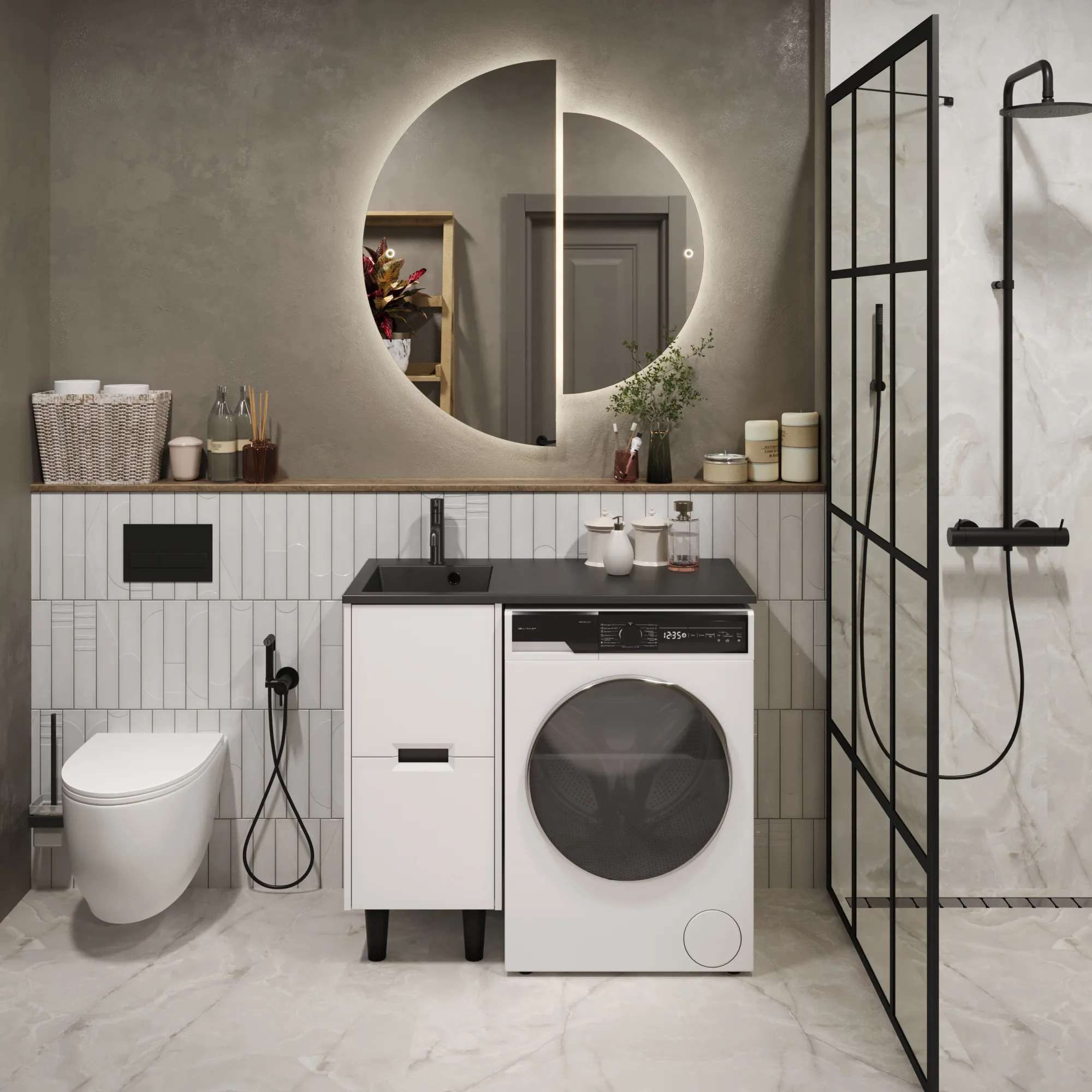 • Экономия пространства: Идеальное решение для ванной комнаты любого размера.