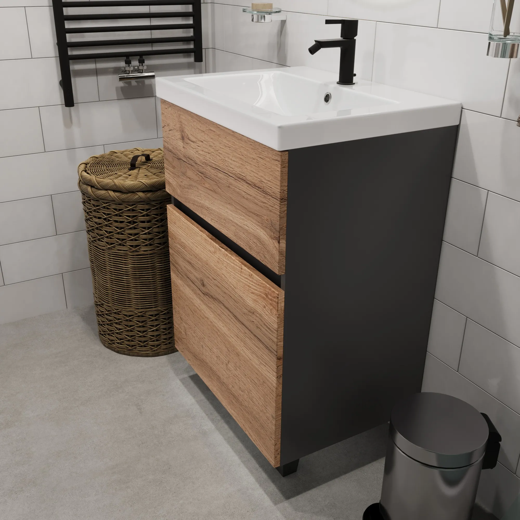 Тумба напольная 1Marka Aris 2ящика, антрацит/дуб крафт золотой