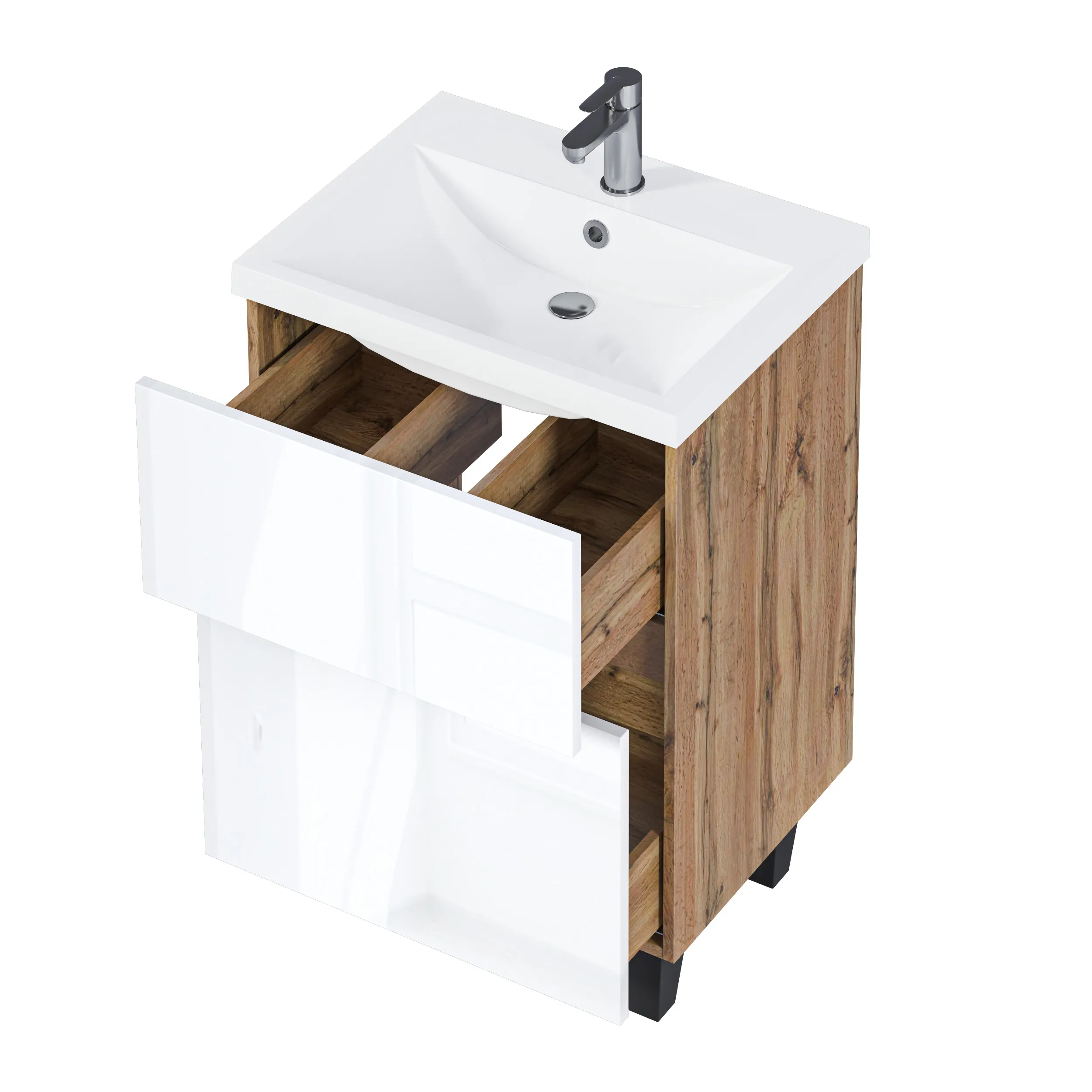 Тумба Aris – современное и функциональное решение для организации хранения и создания уютного пространства в ванной комнате. Сочетание древесного корпуса и белого глянцевого фасада тумбы добавит легкости в интерьер.