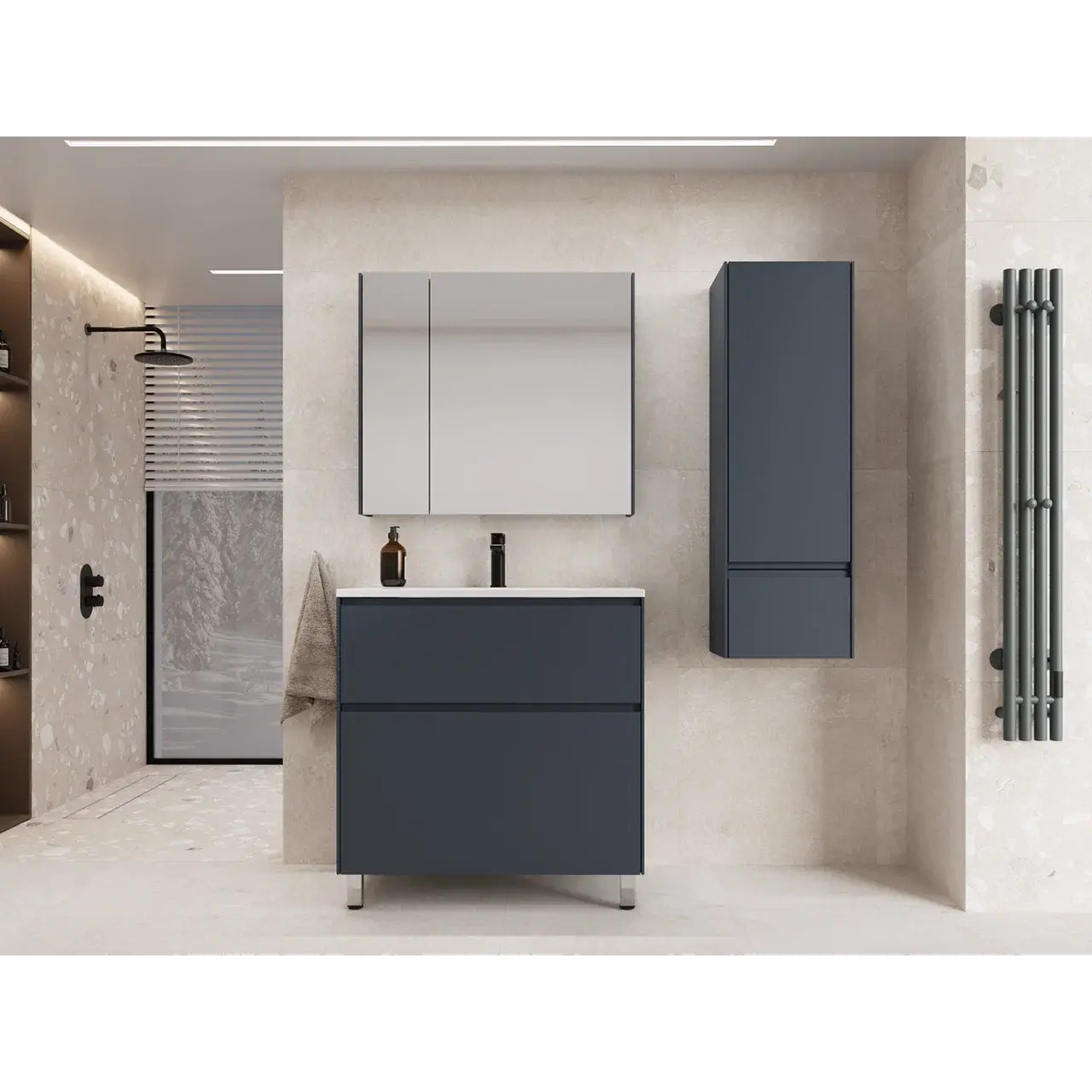 Напольная конструкция обеспечивает устойчивость и надежность, а также легкий доступ к содержимому. Тумба оборудована двумя вместительными ящиками, которые позволяют удобно организовать хранение косметических средств, полотенец и других предметов.