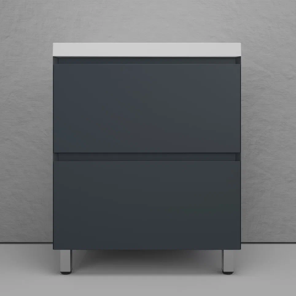 Тумба напольная Style line "Манхэттен 100/80/70/60" ЭМАЛЬ с раковиной ASTI , 2 ящика , PLUS, графит