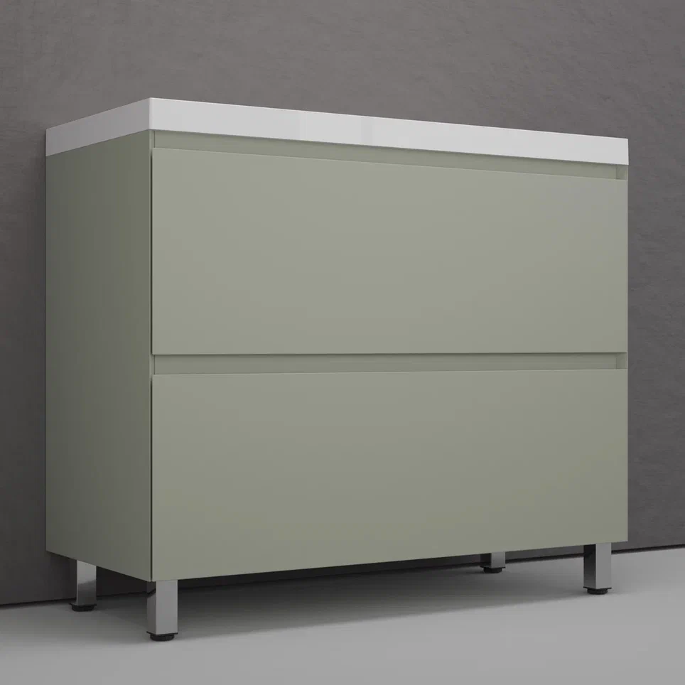 Тумба напольная Style line "Манхэттен 100/80/70/60" ЭМАЛЬ с раковиной ASTI , 2 ящика ,PLUS ,олива