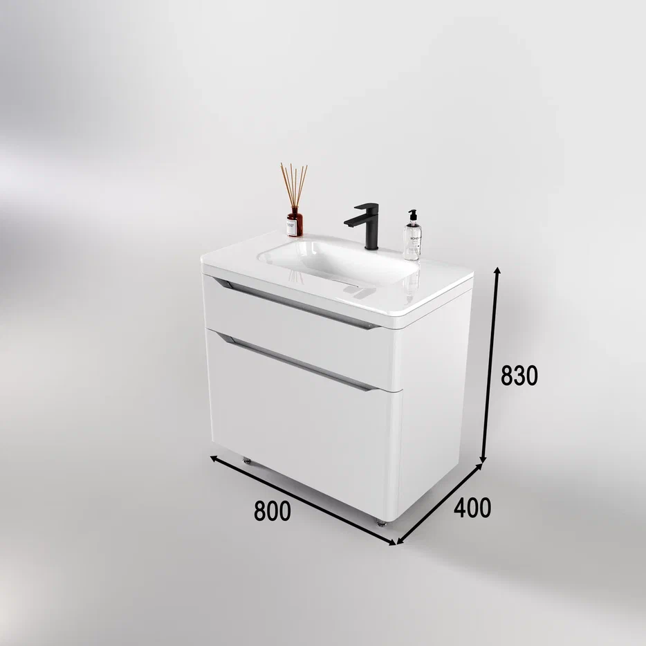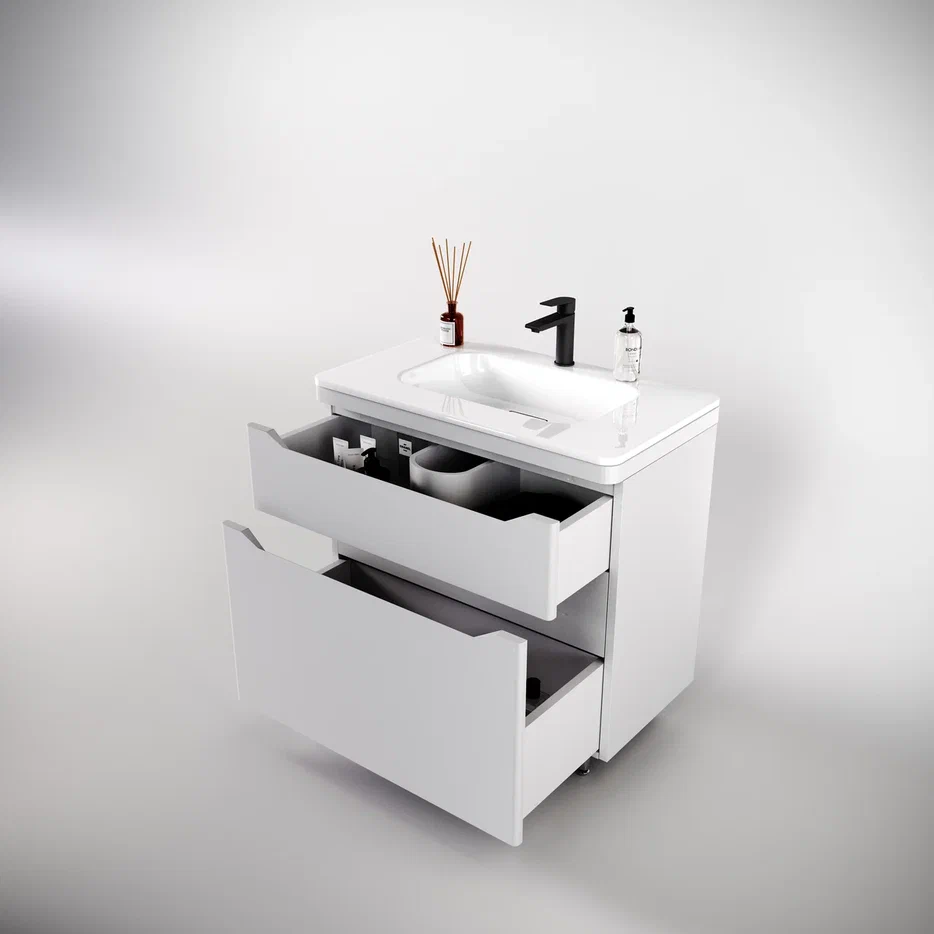 Тумба напольная с раковиной "Марелла " (2 ящ.) Люкс антискрейтч белый матовый, PLUS