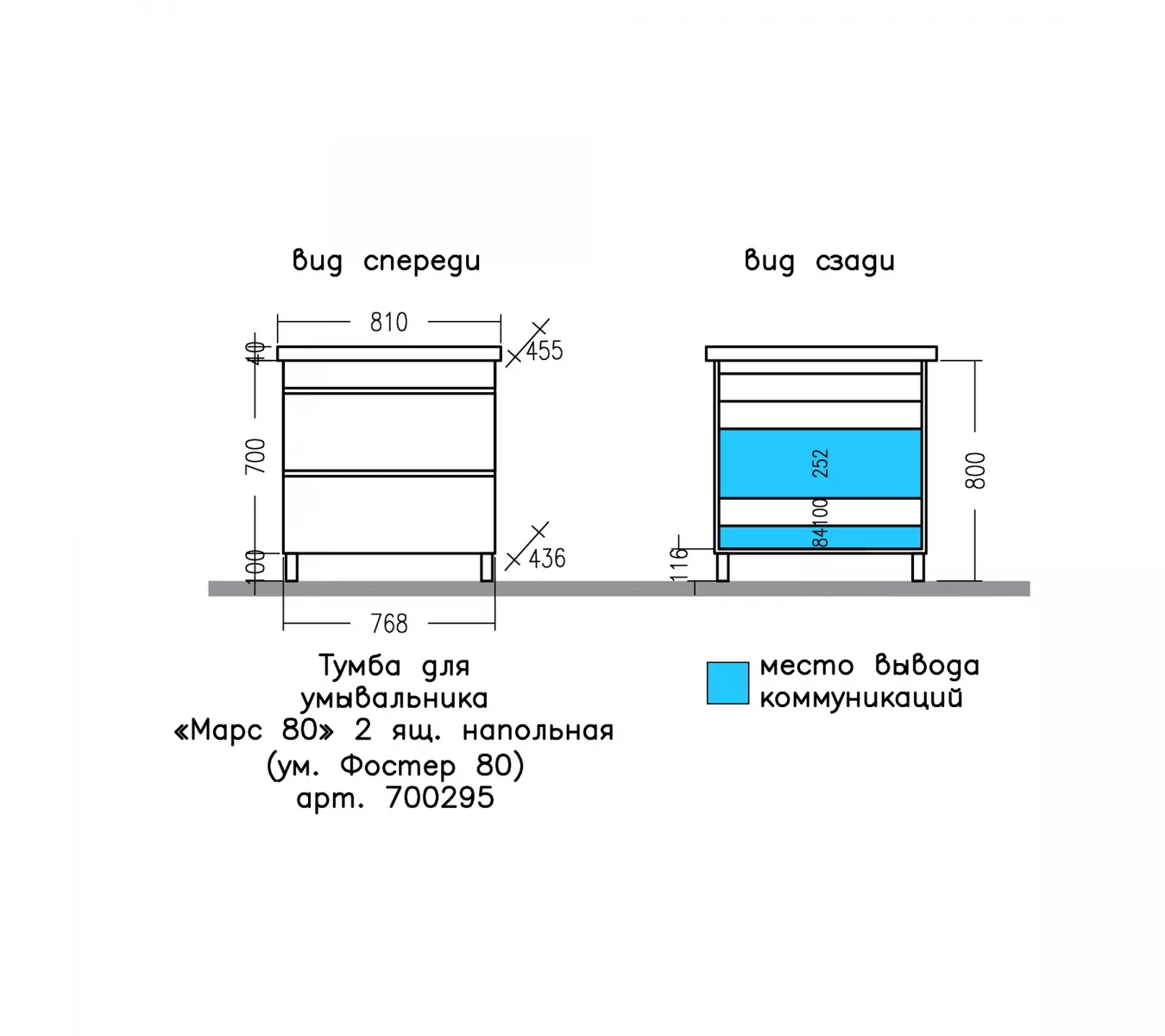 В стоимость входит: тумба. Раковина приобретается отдельно, в соответствии с размером тумбы.
