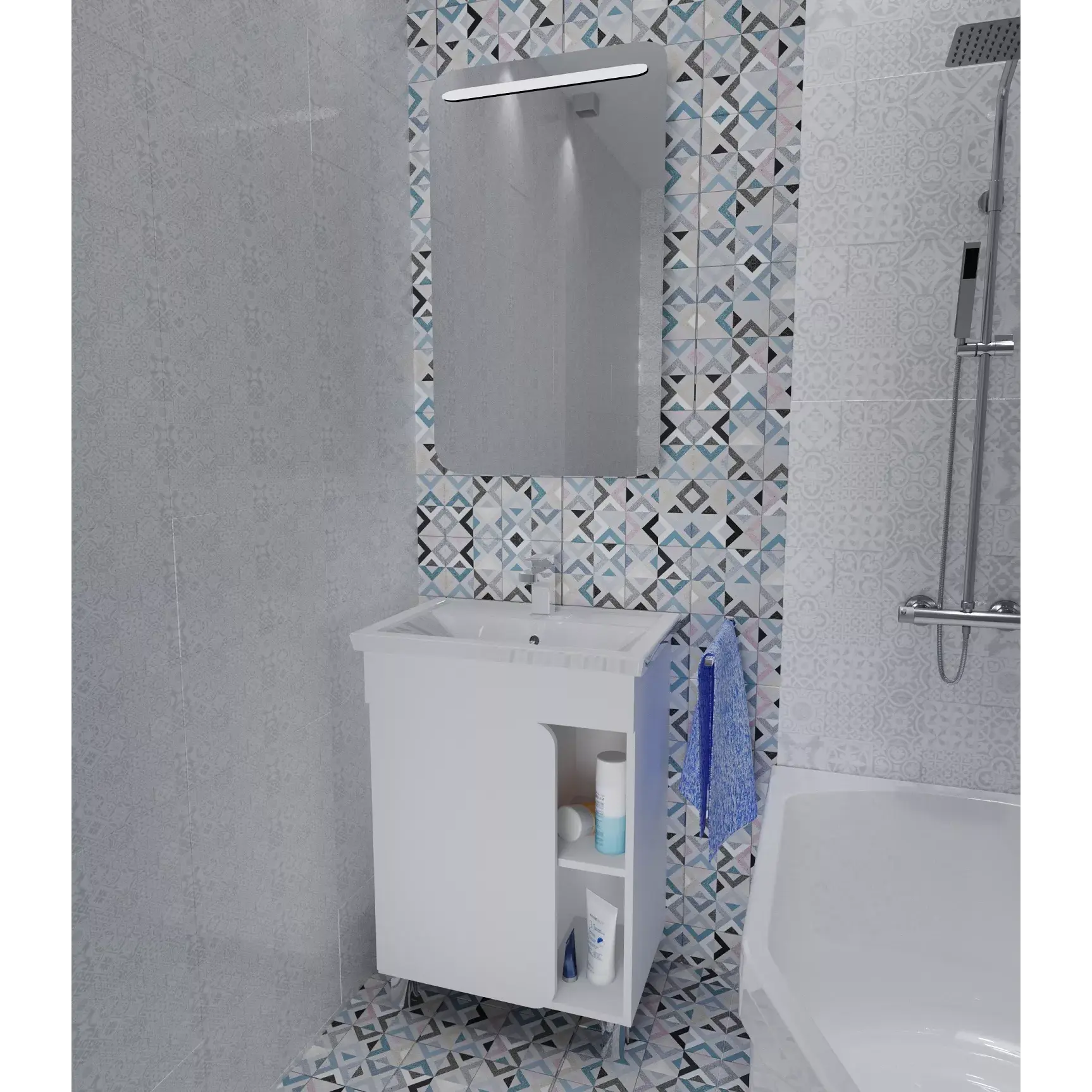 Мебель выполнена в современном минималистичном стиле, для которого характерны правильные геометрические формы, рациональность и эргономичность. Специально продуманная конструкция без ручек позволяет создать цельный легкий образ, не утяжеленный фурнитурой и дает возможность гармонично вписаться в любой интерьер. Для бережливой повседневной эксплуатации, тумбы оснащены демпферами и дверными петлями с доводчиками, обеспечивающими бесшумное и мягкое закрывание.