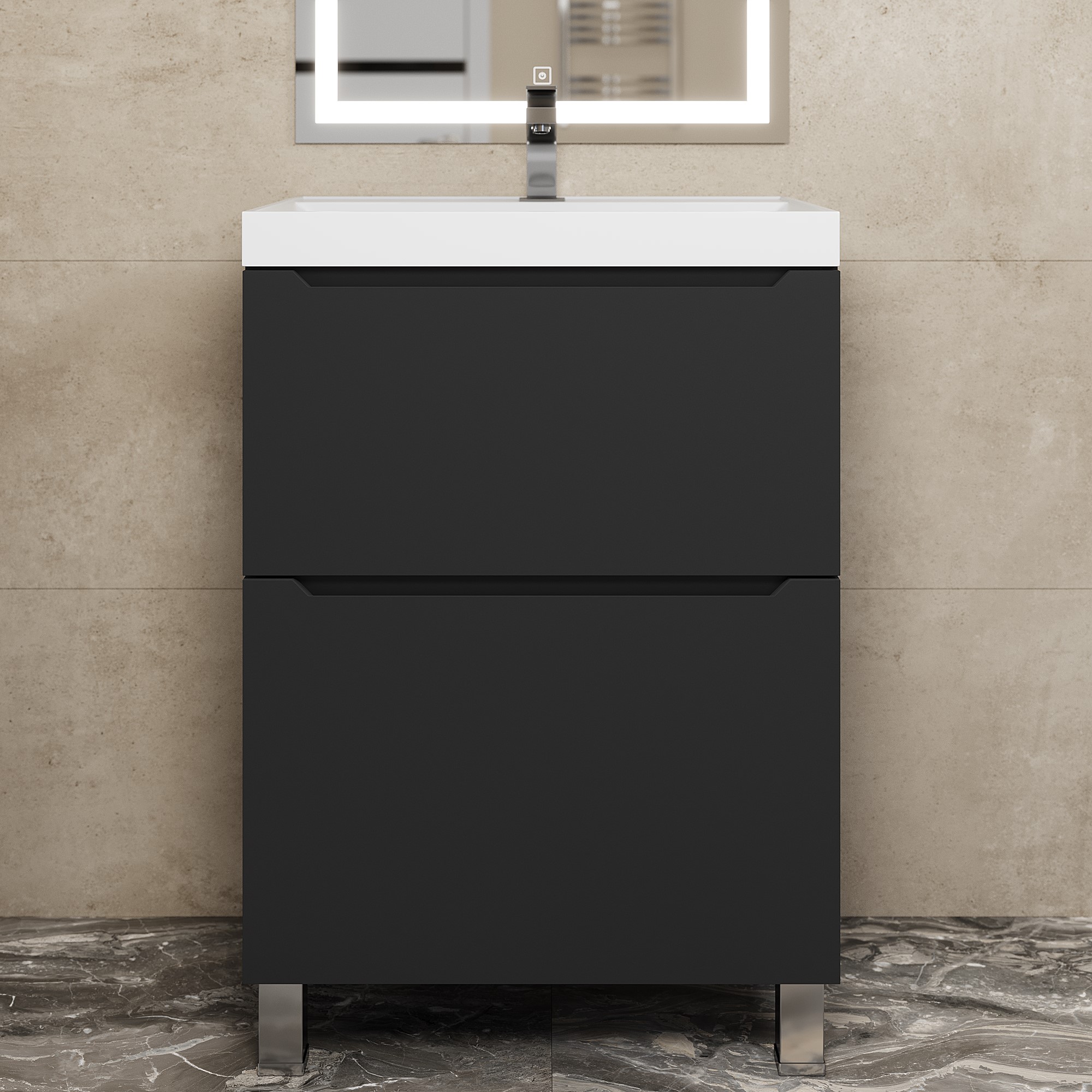 Тумба поставляется в собранном виде, в комплект входят ножки для напольного монтажа.