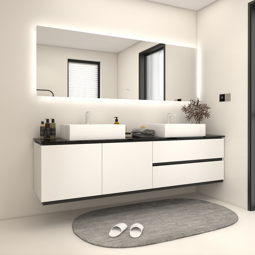 Большое и удобное подвесное зеркало с подсветкой в минималистичном стиле.