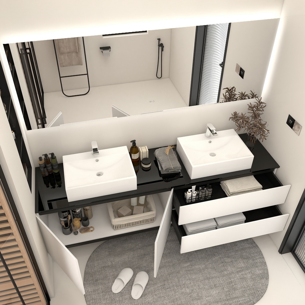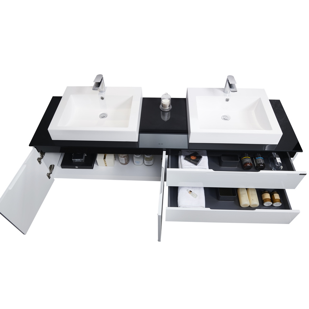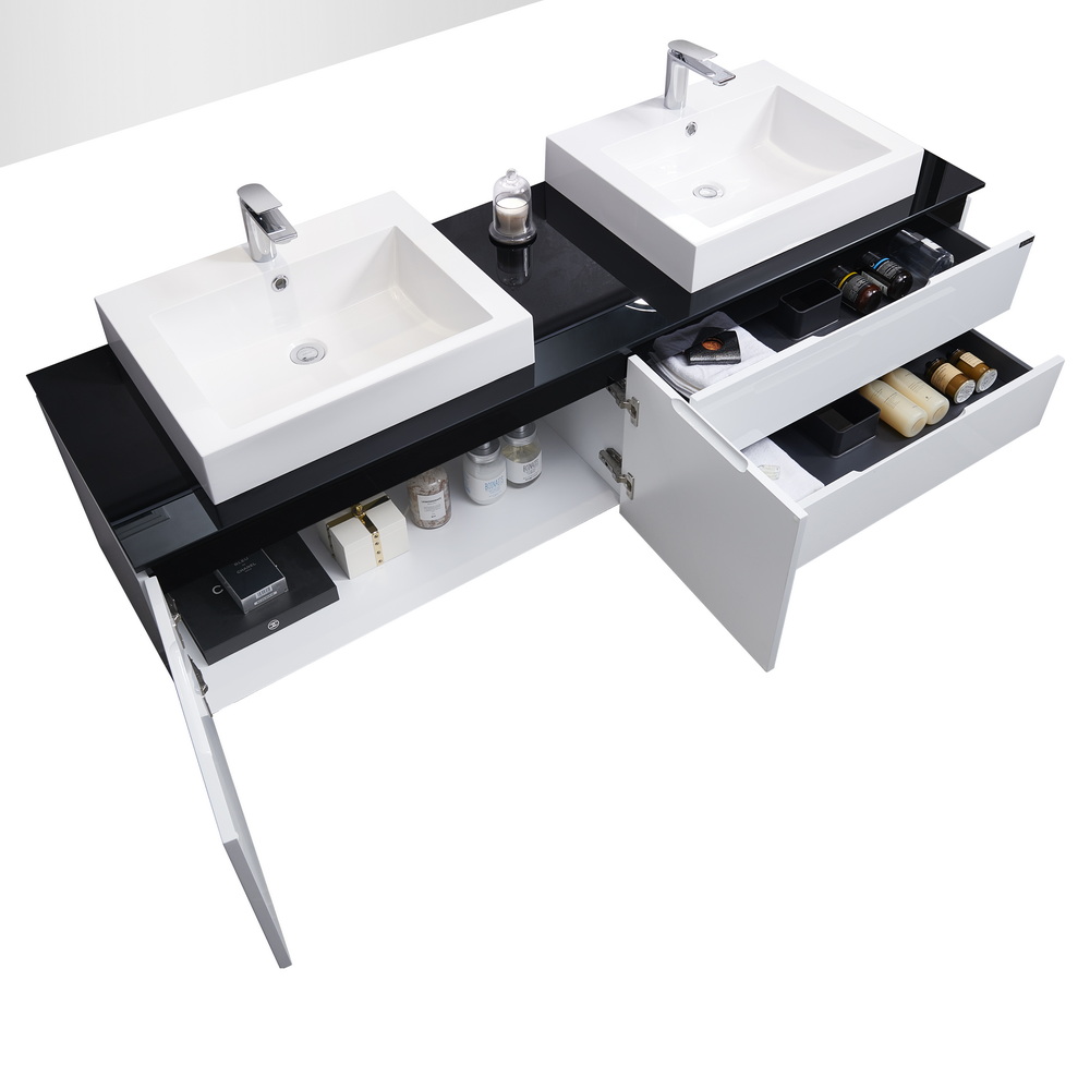 Цвет мебели - белый; столешница – черное стекло;