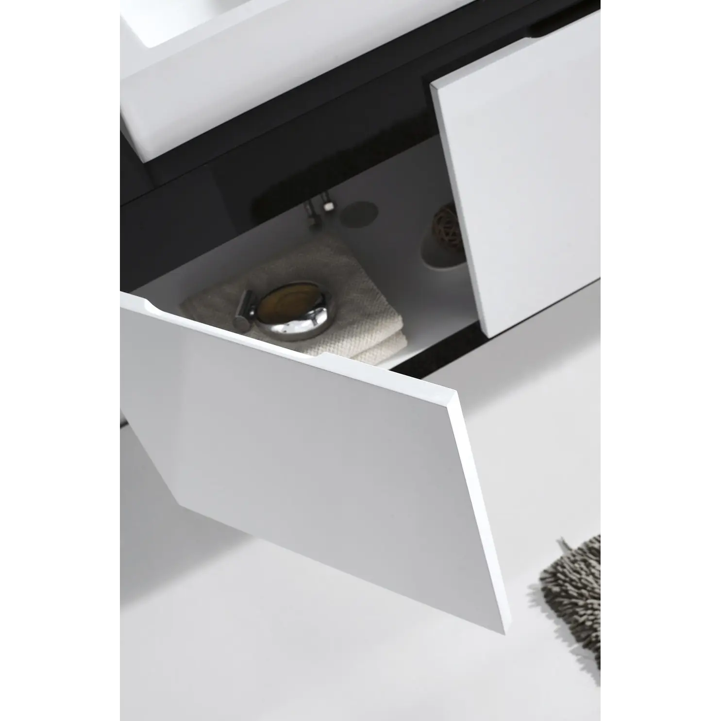 Два выдвижных ящика + один большой ящик с двумя распашными дверцами и доводчиками «DTC»;