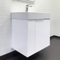 Подвесная тумба-умывальник Comforty Асти для небольших санузлов. Фасад и корпус тумбы изготовлены из влагостойкого ДСП в декоре бетон светлый. Створка тумбы оборудована петлями с механизмами плавного закрывания. В комплекте керамическая раковина Comforty CF3WL032. Тумба подготовлена для подключения водоснабжения снизу.