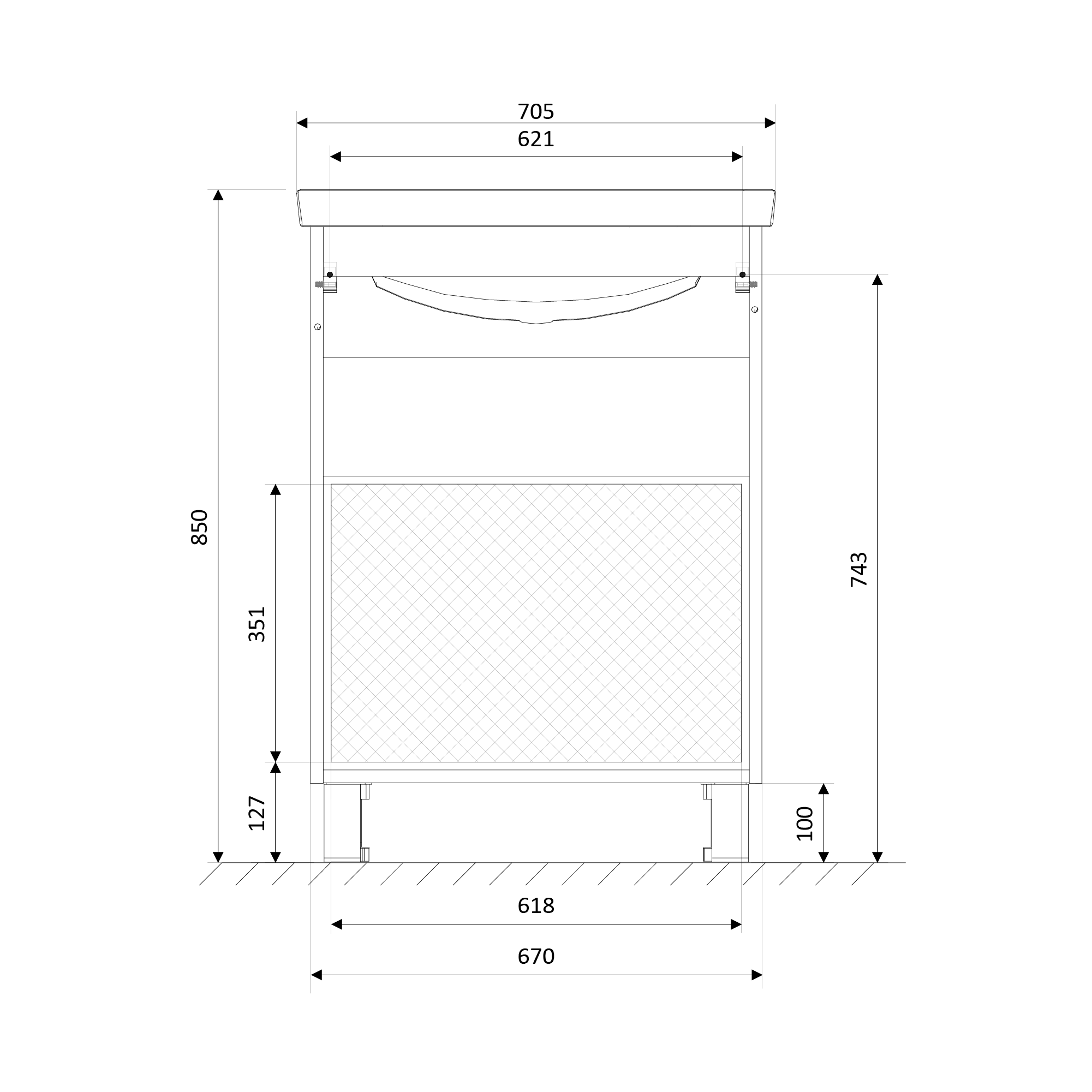 В комплект входит: тумба с раковиной  Comfort 70 Polytitan