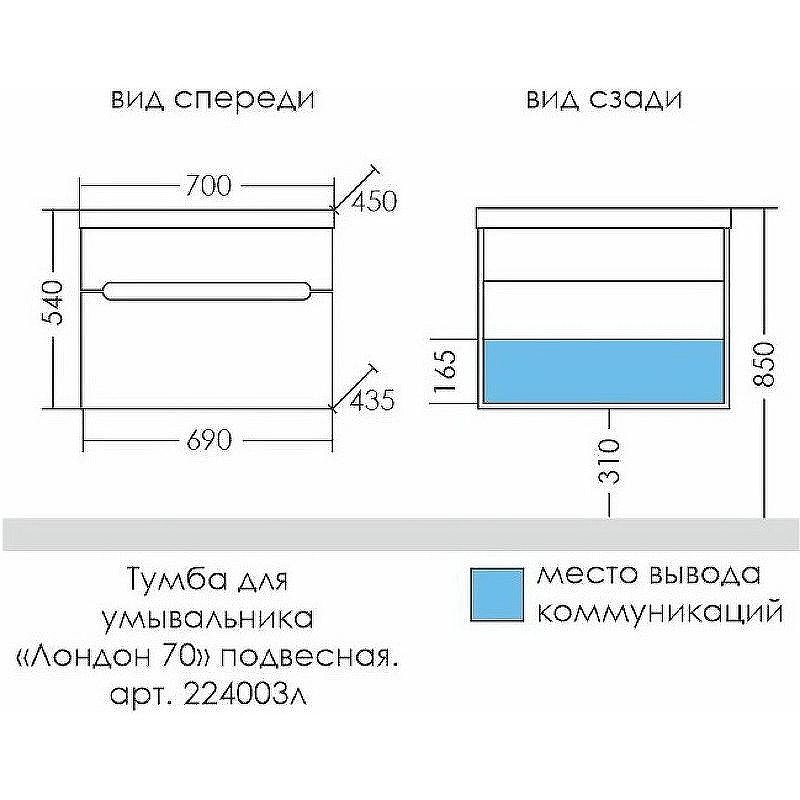 Тумба для умывальника подвесная "Лондон 70" 2 ящ. (ум. Фостер 70 литой мрамор)