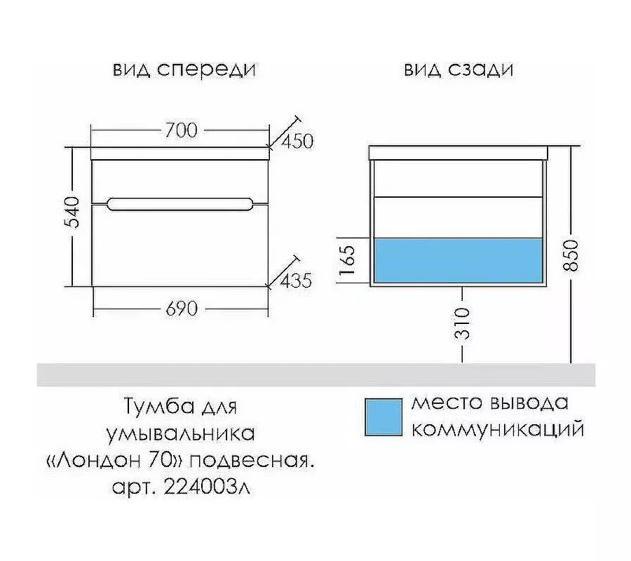 Тумба для умывальника подвесная "Лондон 70" 2 ящ. (ум. Фостер 70 литой мрамор)