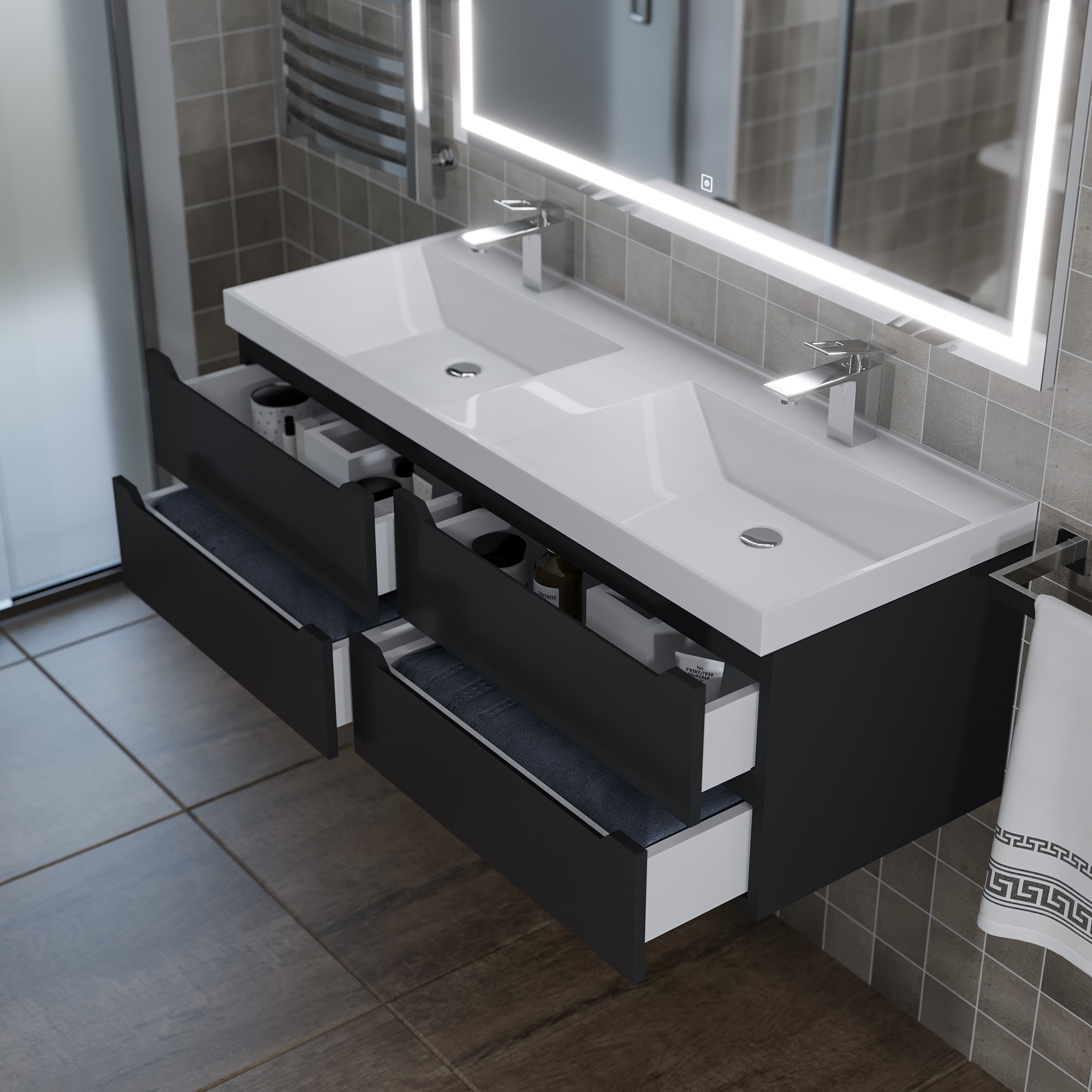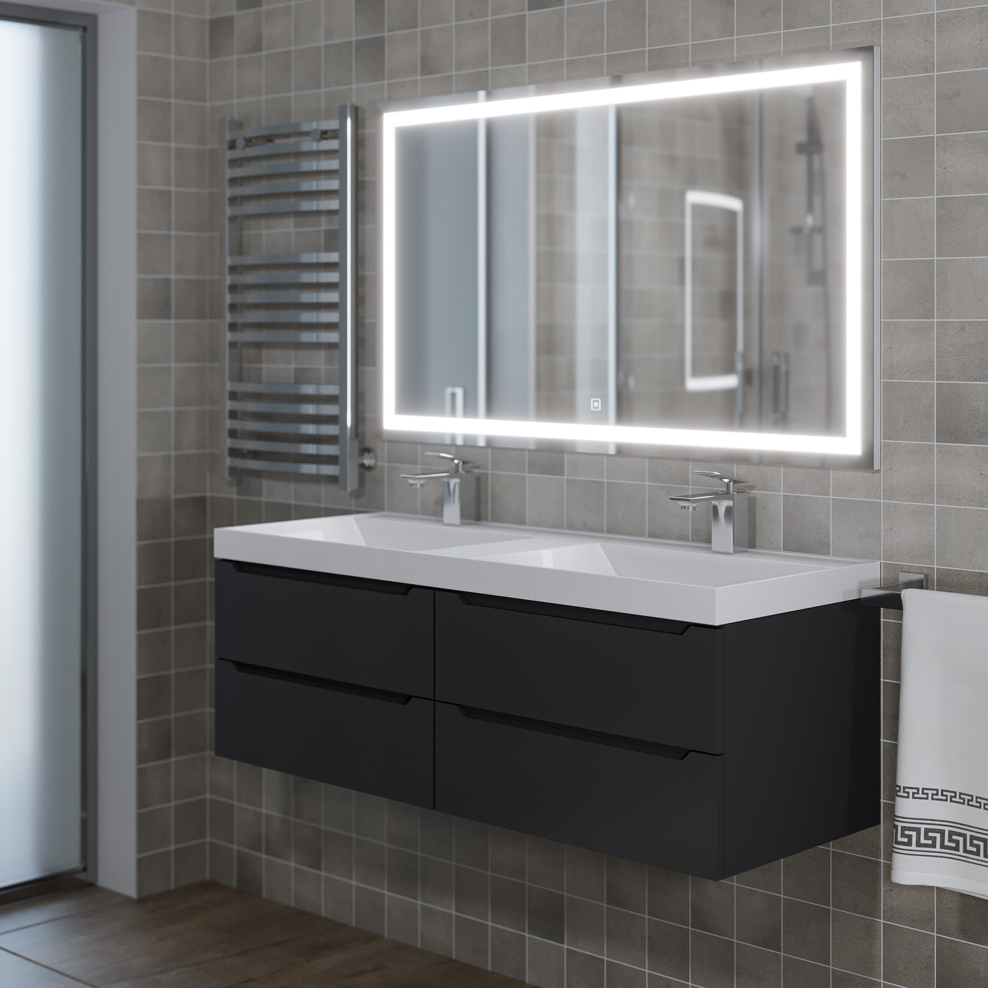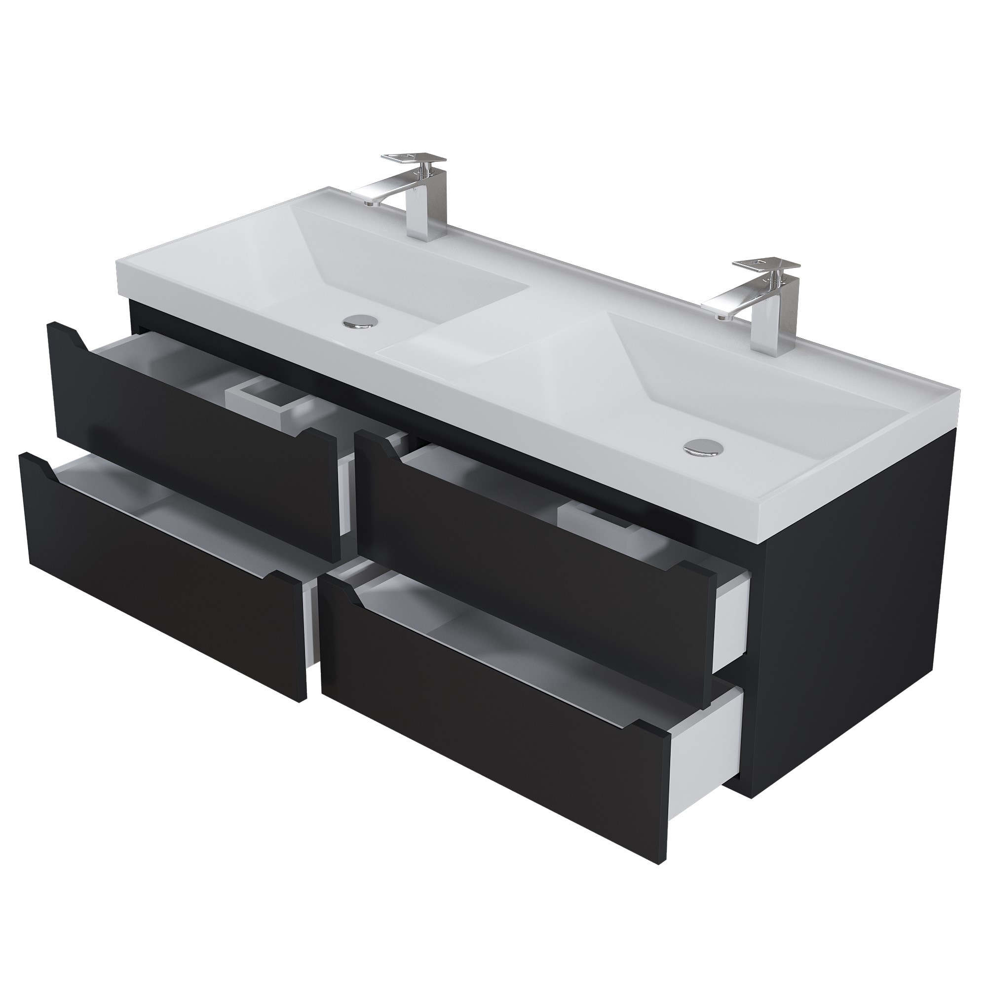 Тумба подвесная  под двойную раковину  Uperwood Tanos 120х45х50 см, черная матовая, 4 ящика
