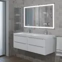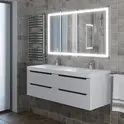 Вместительная подвесная тумба для ванной комнаты Uperwood Tanos под раковину с двумя чашами Uperwood Classic 120 см имеет 4 выдвижных ящика и представляет собой функциональное, надежное и практичное решение, которое отлично впишется в любой современный дизайн ванной комнаты.