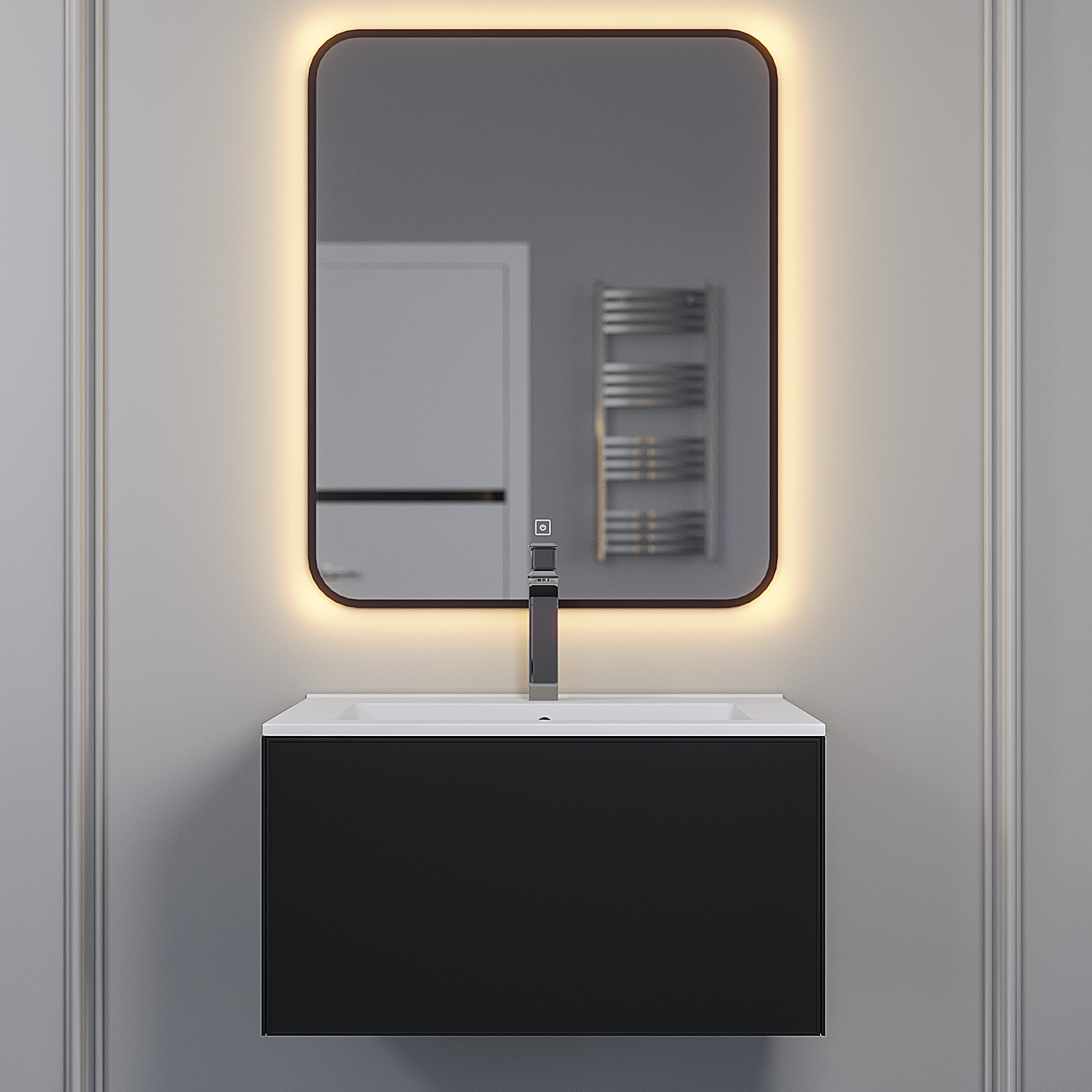 Тумбы для ванной комнаты выполнены из влагостойкого МДФ повышенной плотности, класса МВ: толщина фасада 19 мм, толщина боковин 16 мм.