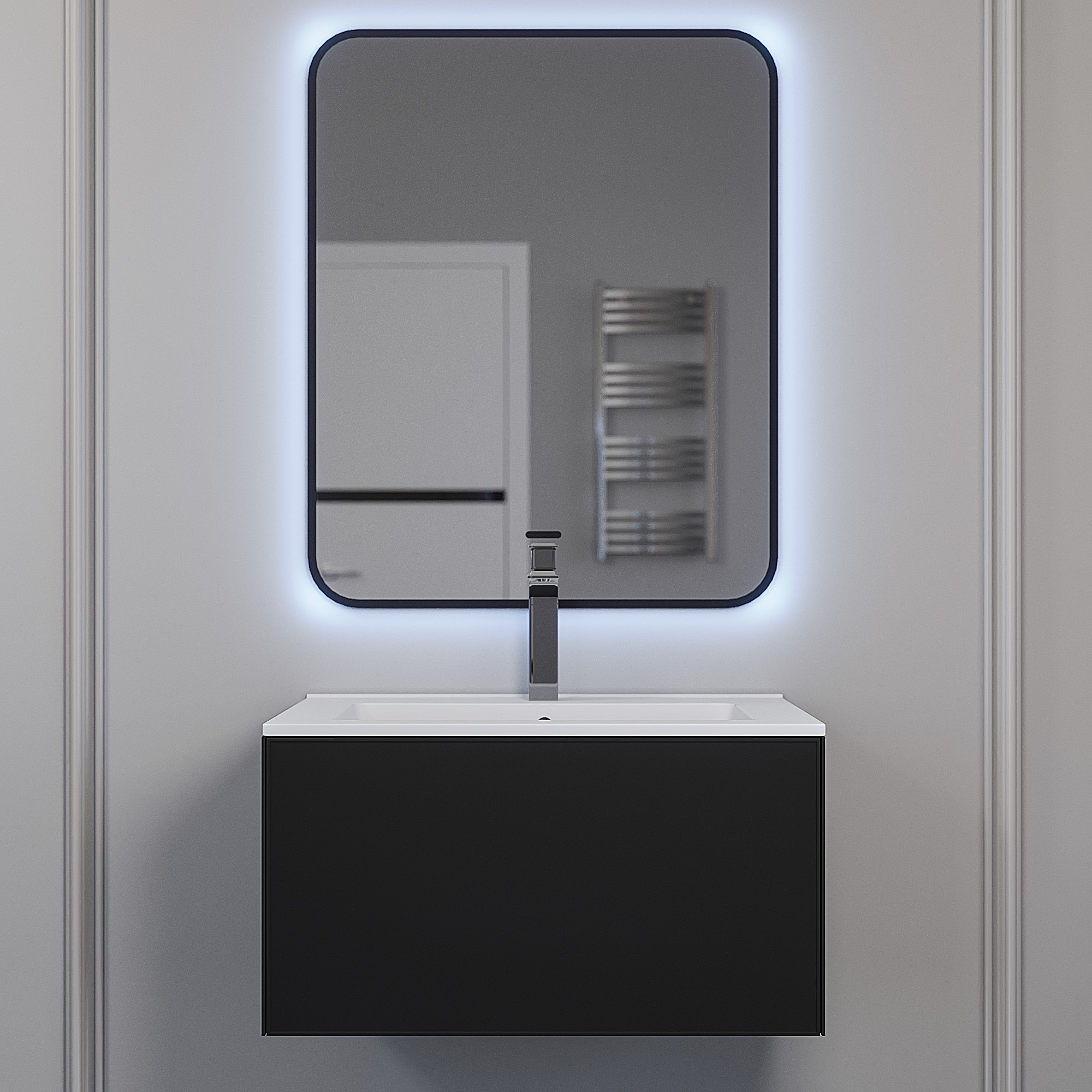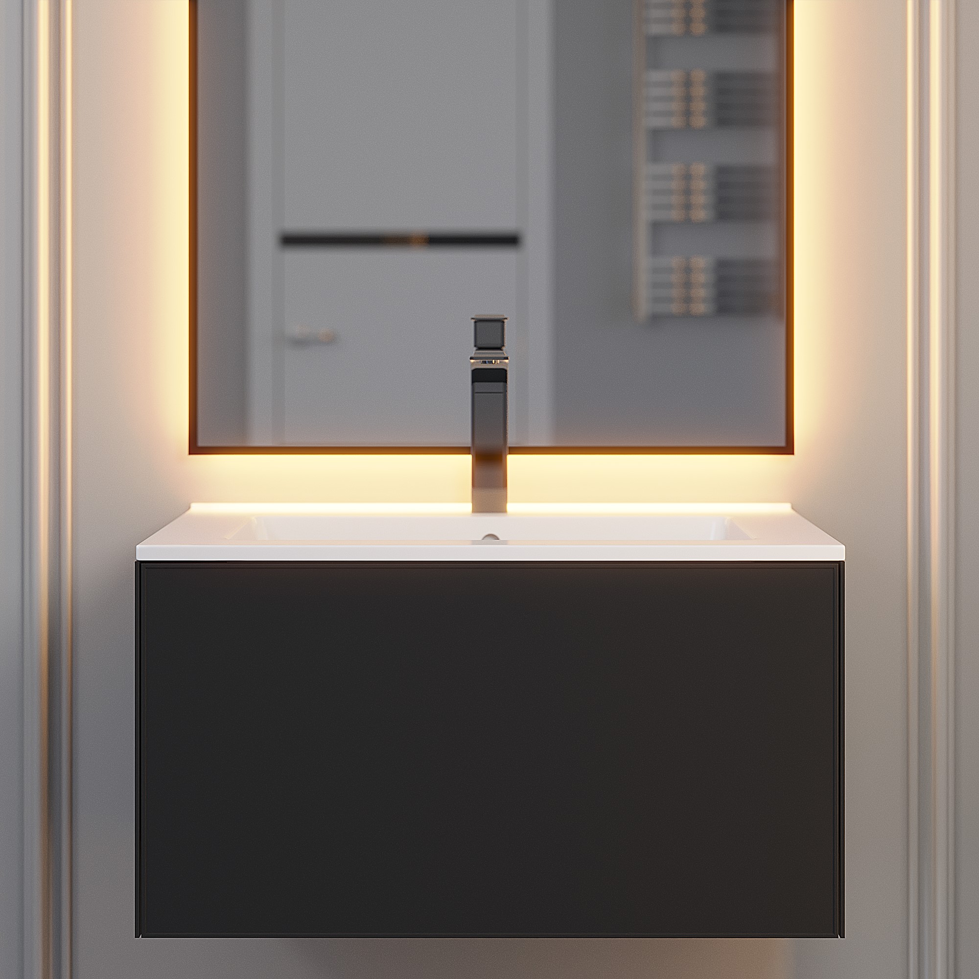 Премиальная коллекция мебели для ванных комнат Parma Premium от бренда Uperwood представлена подвесными тумбами шириной 65, 75 и 85 см в черном и белом цвете.