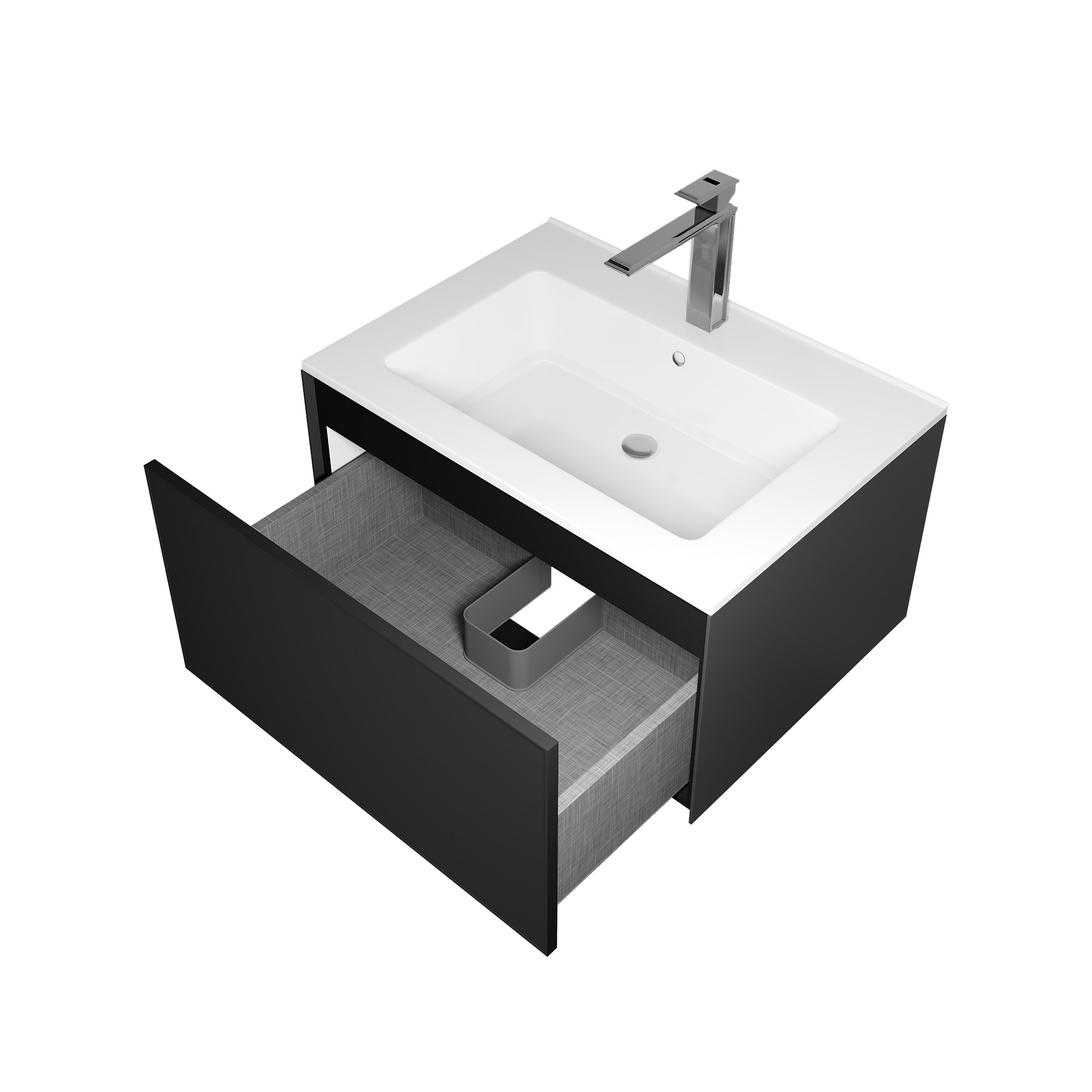 Выдвижной ящик изготовлен из влагостойкой ЛДСП.МДФ и ВЛДСП производство Egger (Австрия).Ящик оснащен доводчиками Samet (Турция), пуш скрытого монтажа полного выдвижения.