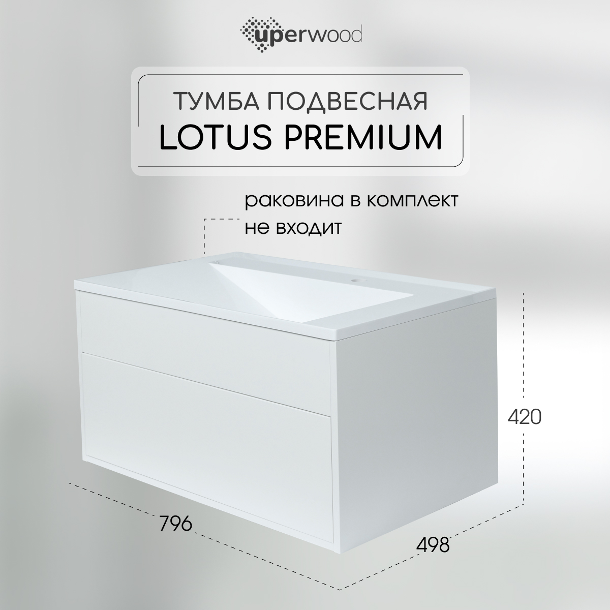 Подвесная тумба для ванной комнаты с выдвижным ящиком от бренда Uperwood из коллекции Lotus шириной 79,6 см подходит под раковину Uperwood Lotus шириной 80 см и представляет собой функциональное, надежное и практичное решение, которое отлично впишется в любой современный дизайн ванной комнаты.