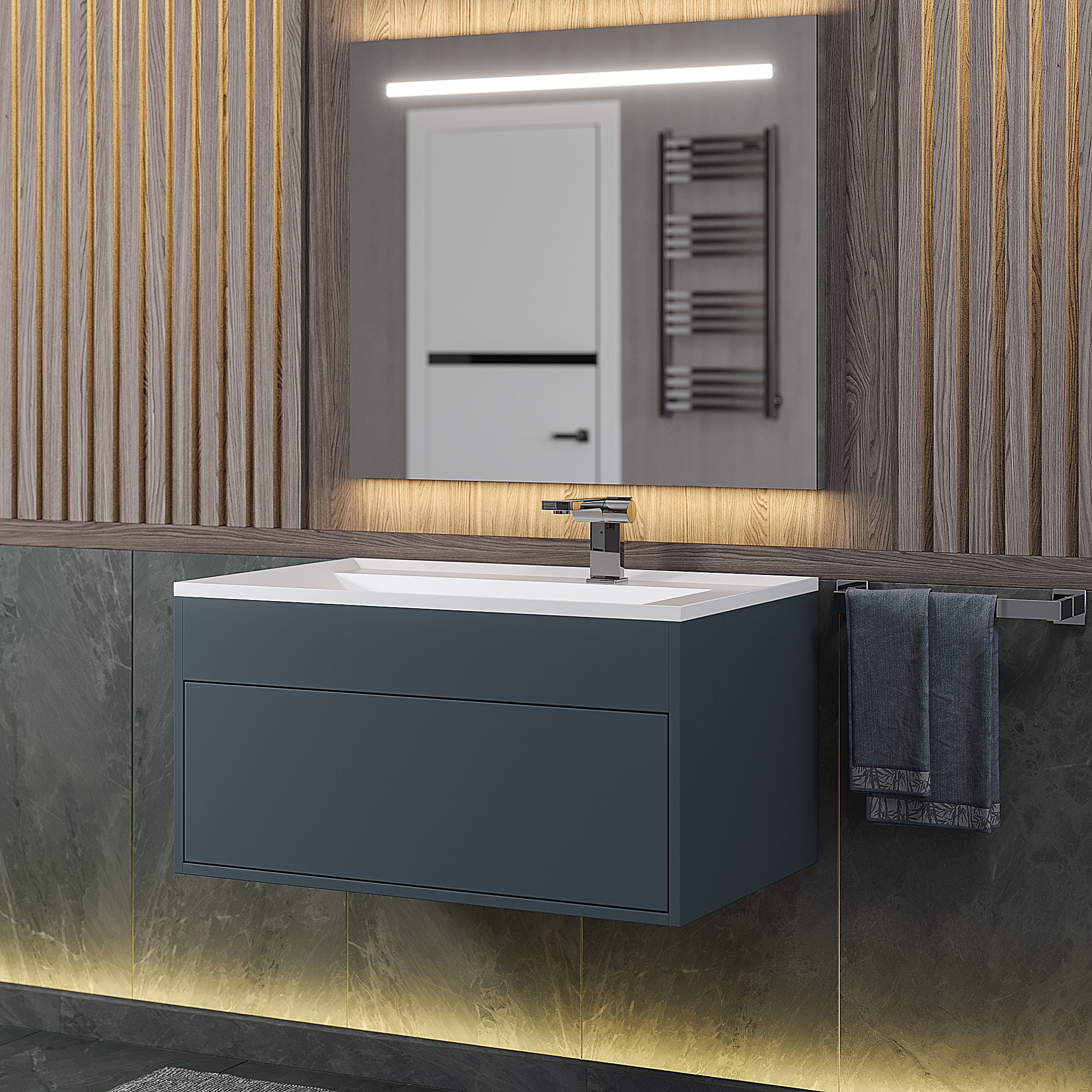 Подвесная тумба для ванной комнаты с выдвижным ящиком от бренда Uperwood из коллекции Lotus шириной 79,6 см подходит под раковину Uperwood Lotus шириной 80 см и представляет собой функциональное, надежное и практичное решение, которое отлично впишется в любой современный дизайн ванной комнаты.