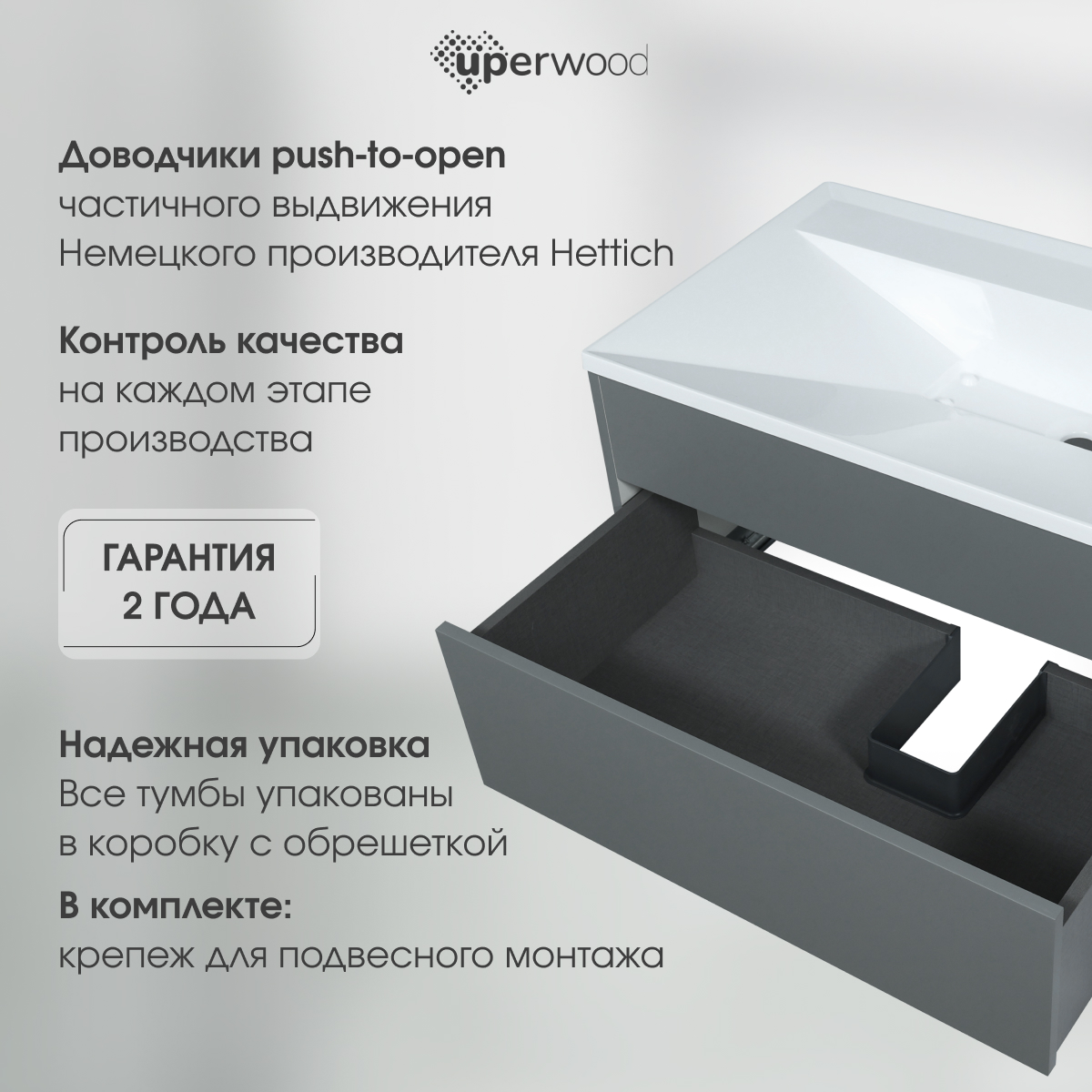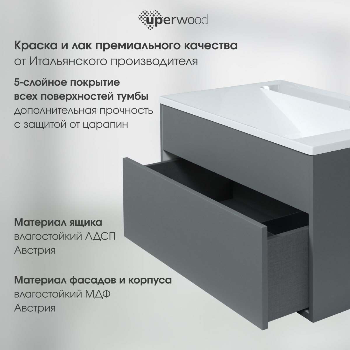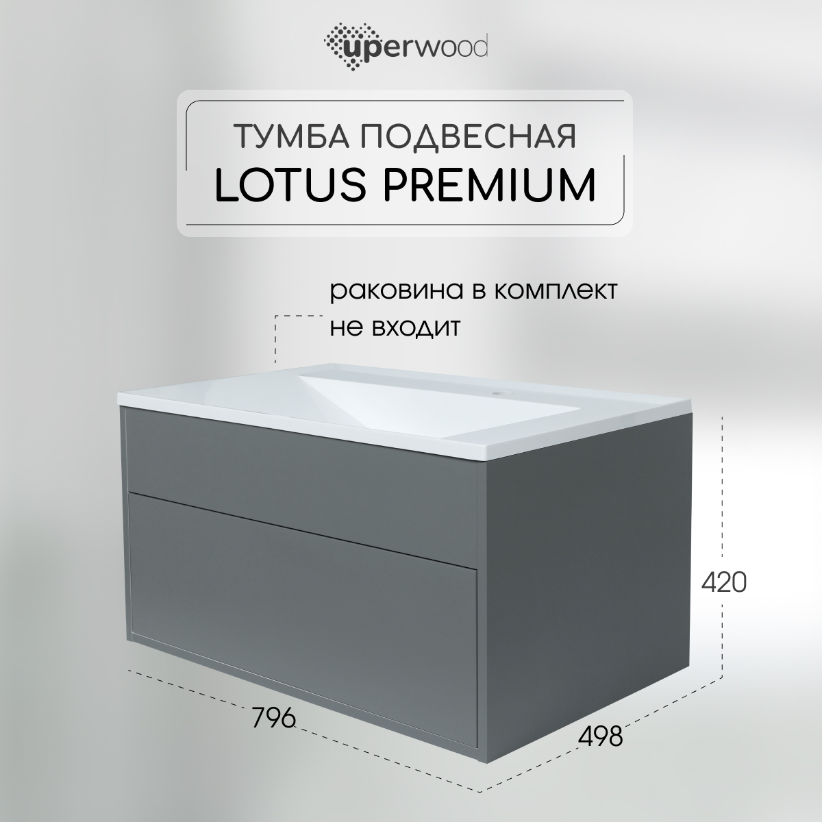 Коллекция тумб представлена в двух размерах под раковины Uperwood Lotus и Uperwood Lotus Quartz 80 и 100 см шириной.