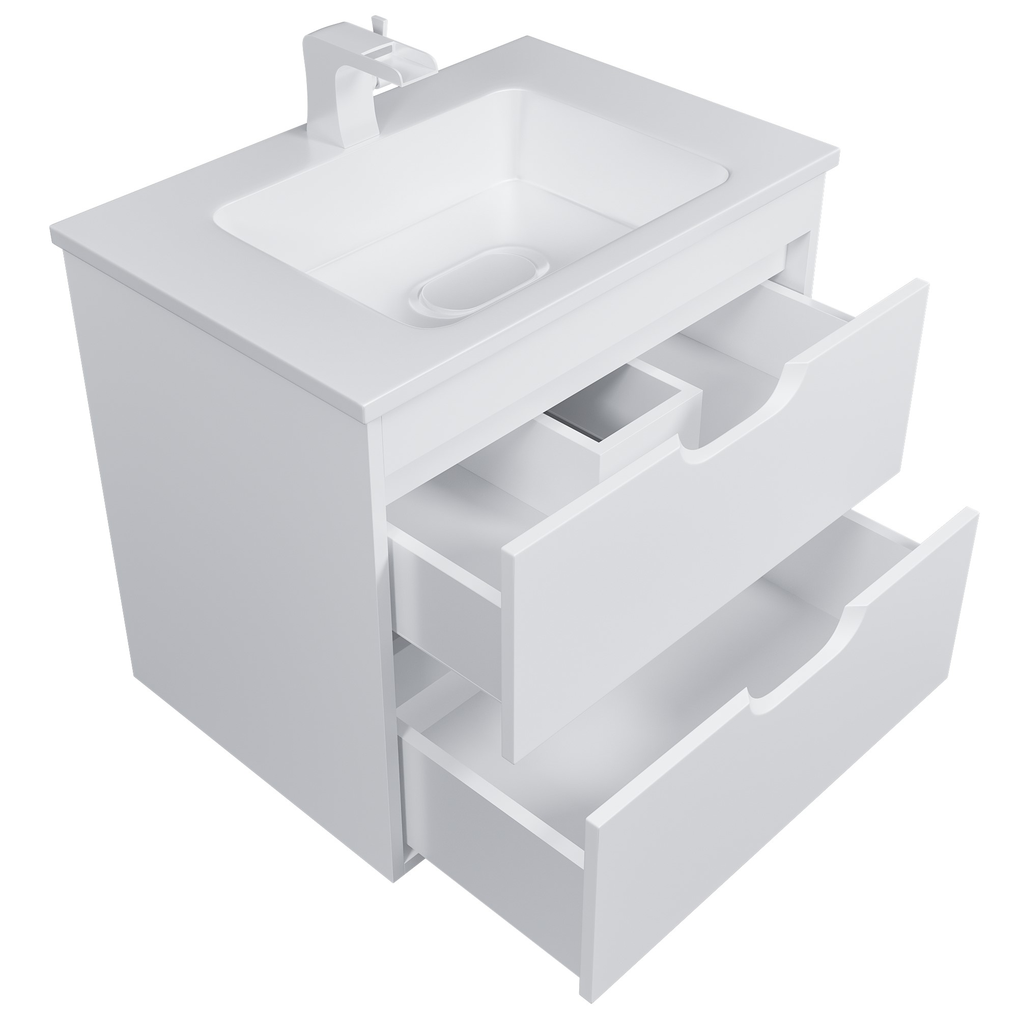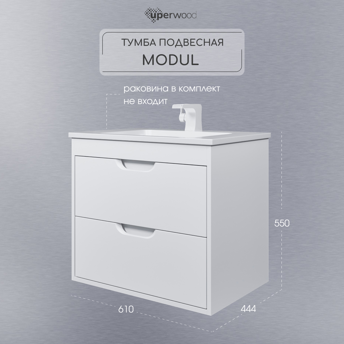 К тумбам Uperwood Modul подходят полувстраиваемые раковины из коллекции Uperwood Modul, выполненные из литьевого мрамора. Раковина подбирается строго под размер тумбы.