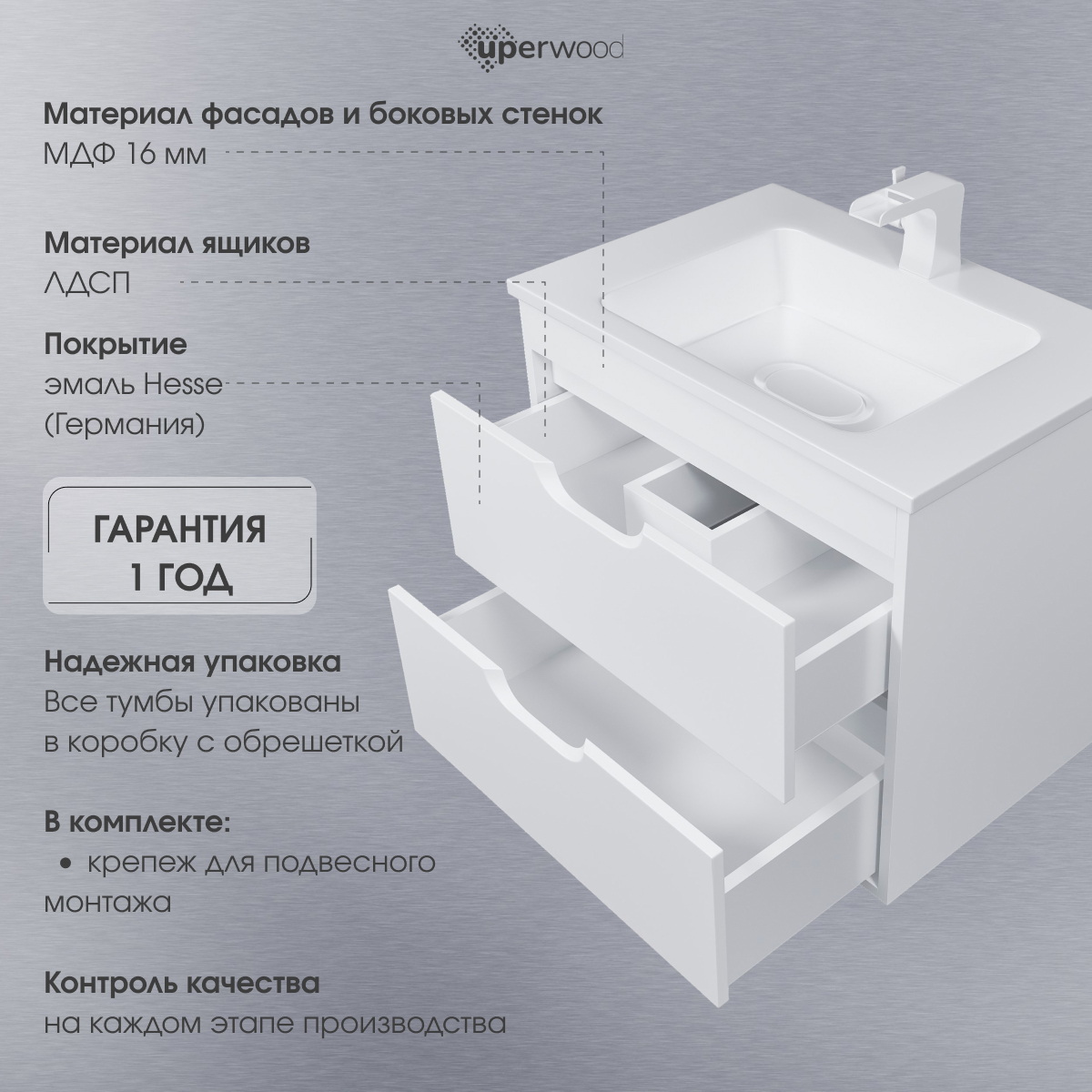 Подвесная тумба под раковину для ванной из коллекции Uperwood Modul представляет собой функциональное, надежное и практичное решение, которое отлично впишется в любой современный дизайн ванной комнаты