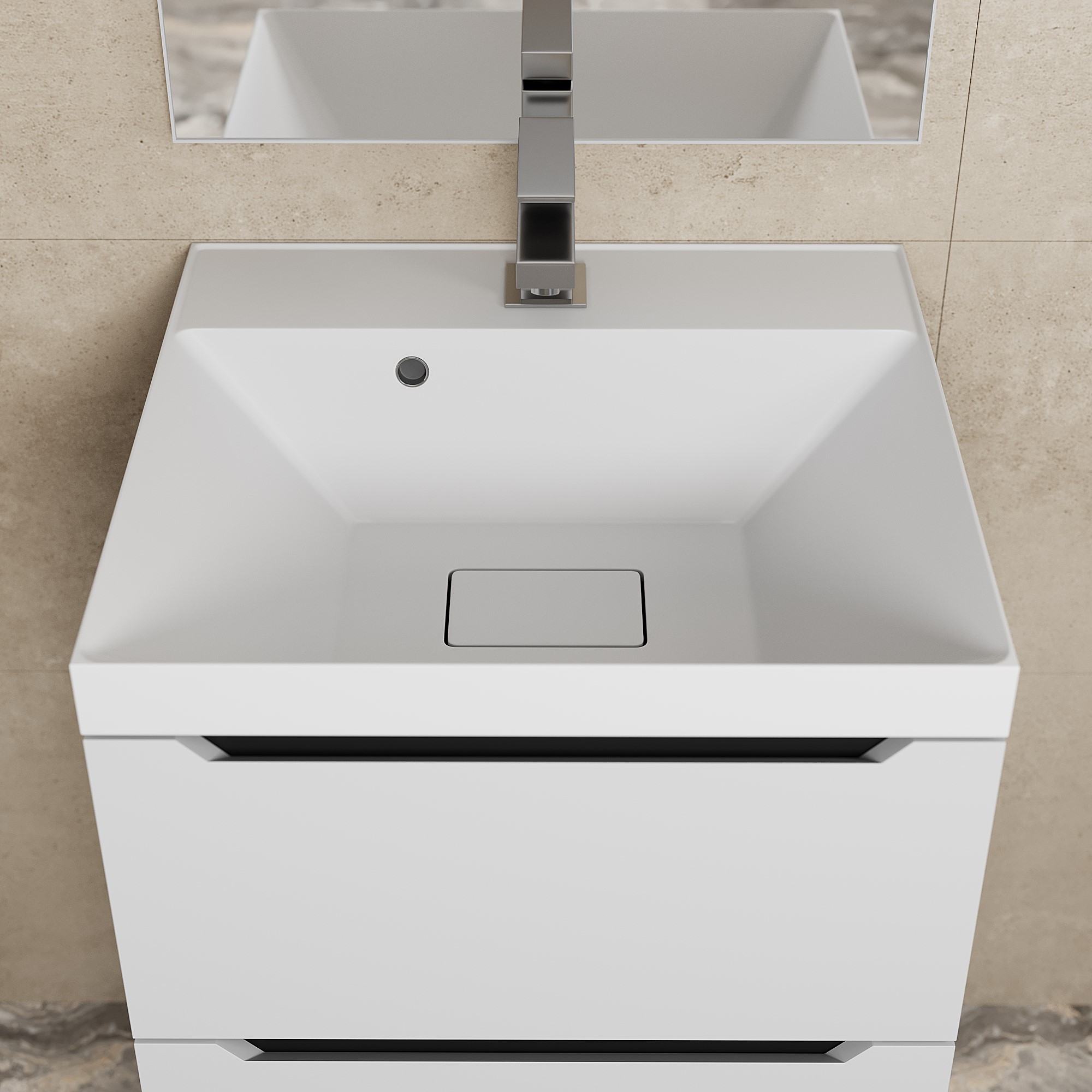 Элегантный минималистичный дизайн тумбы дополняет ее безупречная матовая поверхность.