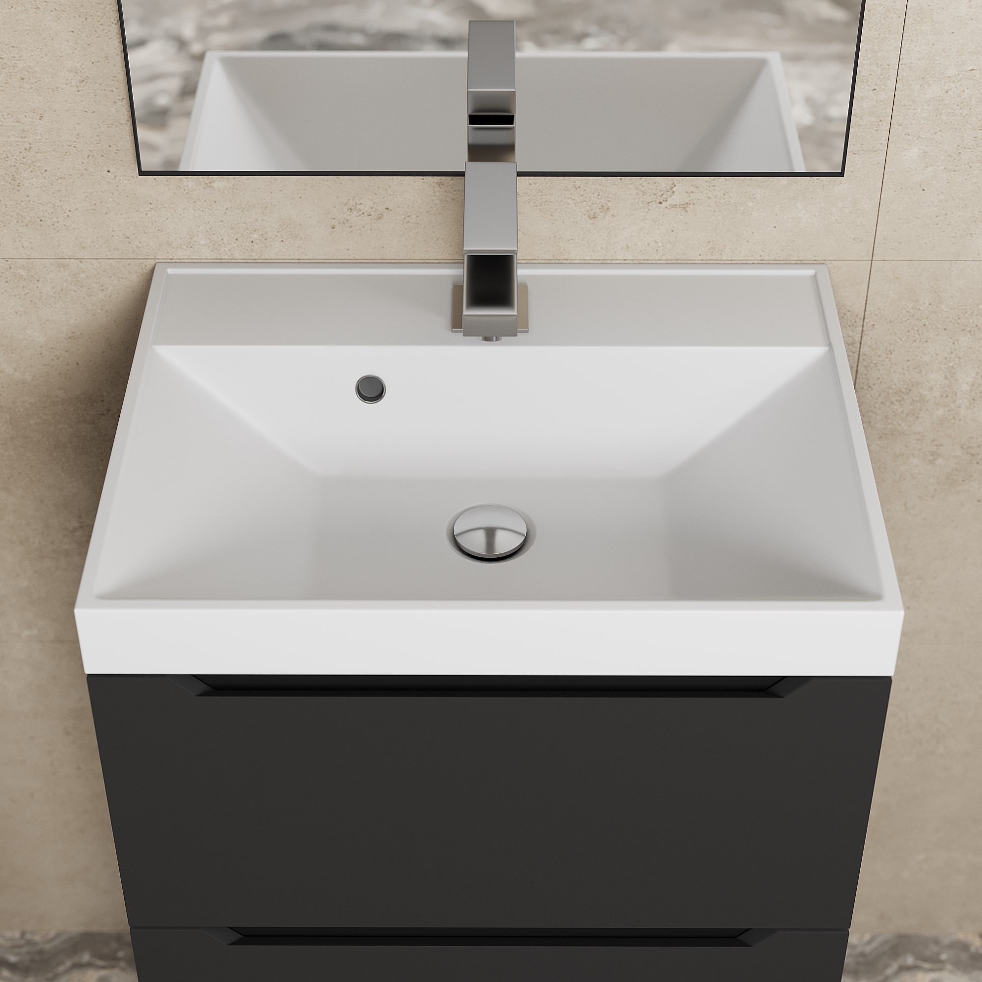 Элегантный минималистичный дизайн тумбы дополняет ее безупречная матовая поверхность.