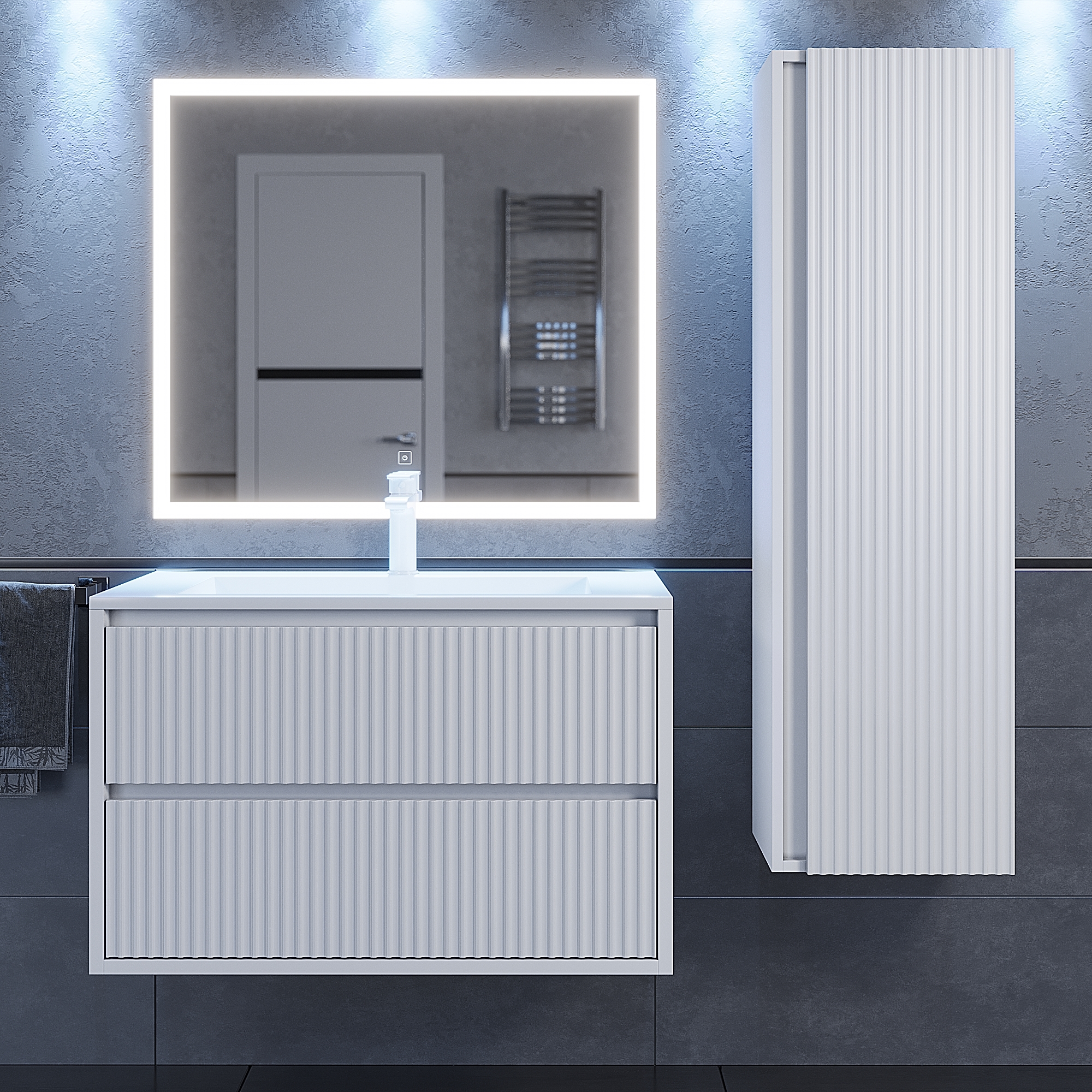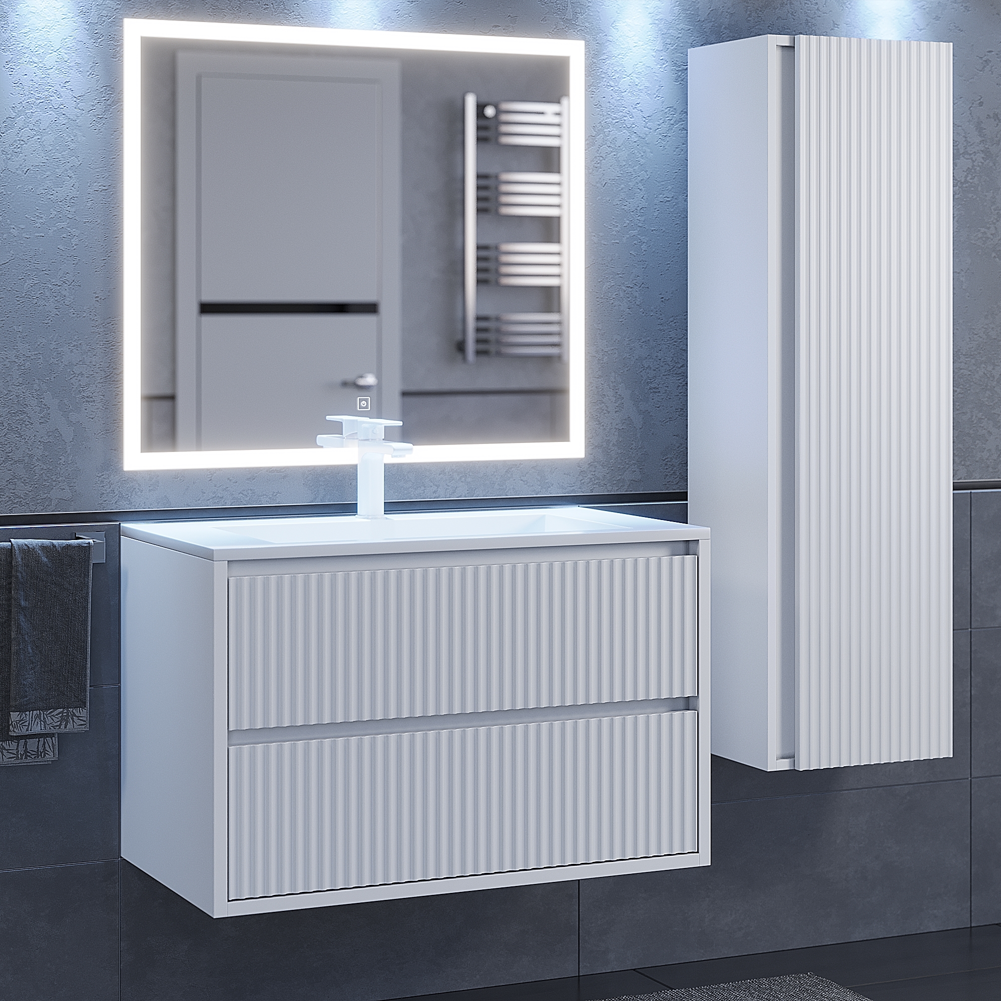 Цветовые решения тумб Uperwood Next: белая матовая и белая/графит в матовом исполнении (графитовый фасад и белые боковины).